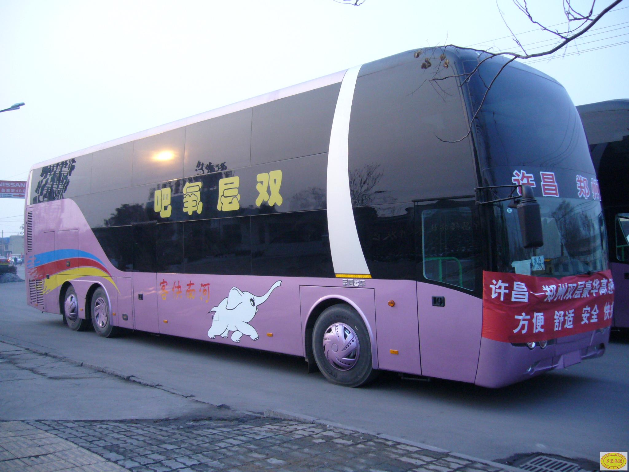 这两台双层豪华大巴是许昌市目前最豪华的客运车辆,具有安全、舒适、快捷的优点,再加上乘务人员“航空式”的服务,自投入运营以来,已经成为郑许高速上一道亮丽的风景线。
