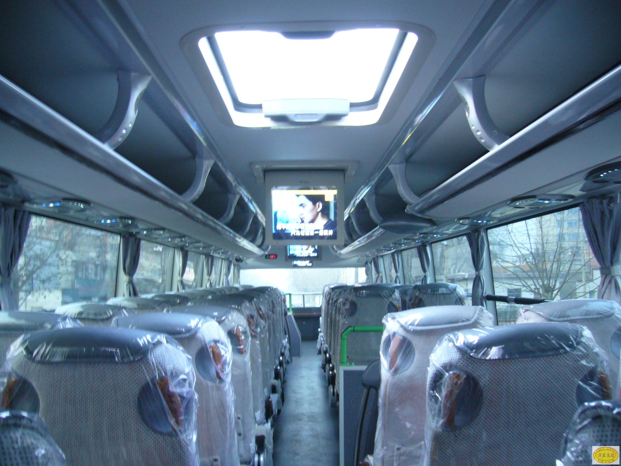 许昌万里富士公司新增两台双层豪华大巴,车型为宇通ZK6146HSB。全车长13.6米,宽2.55米,高4米,核载76人,可坐74位乘客,其中上层56座,底层18座,车上配备航空座椅,宽敞舒适,底层设有卫生间、饮水机,全车配备车载电视7台(底层2台,顶层5台),车辆装有3路监控录像设备,公司可随时了解车内发生的情况,上下层均装有制氧设备,可随时对车内供氧,净化空气。