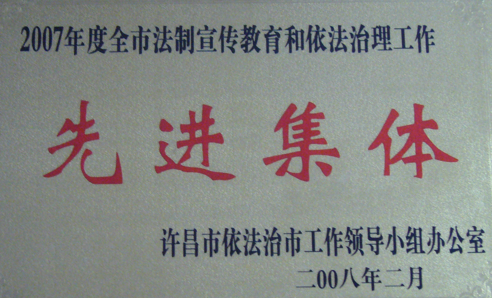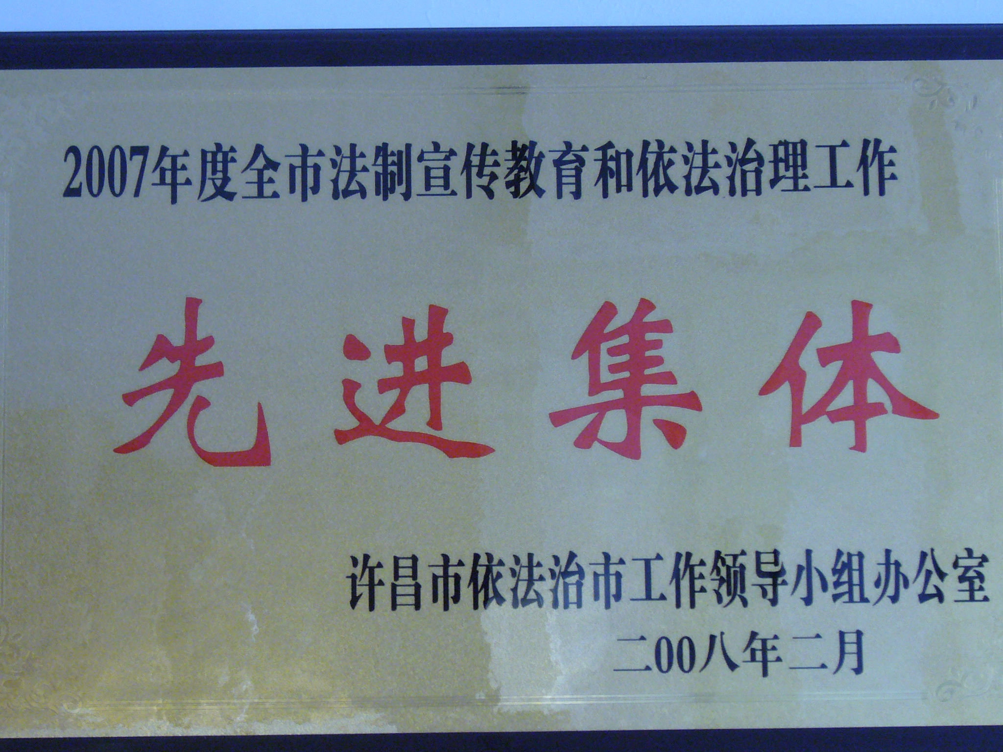 近日,从许昌市依法治市工作领导小组办公室获悉,万里集团因在许昌市的法制宣传教育和依法治理工作中取得了显著成效,依法治理工作向深度推进、企业法制化管理水平进一步提高,被评为“2007年度法制宣传教育和依法治理工作先进集体”。
