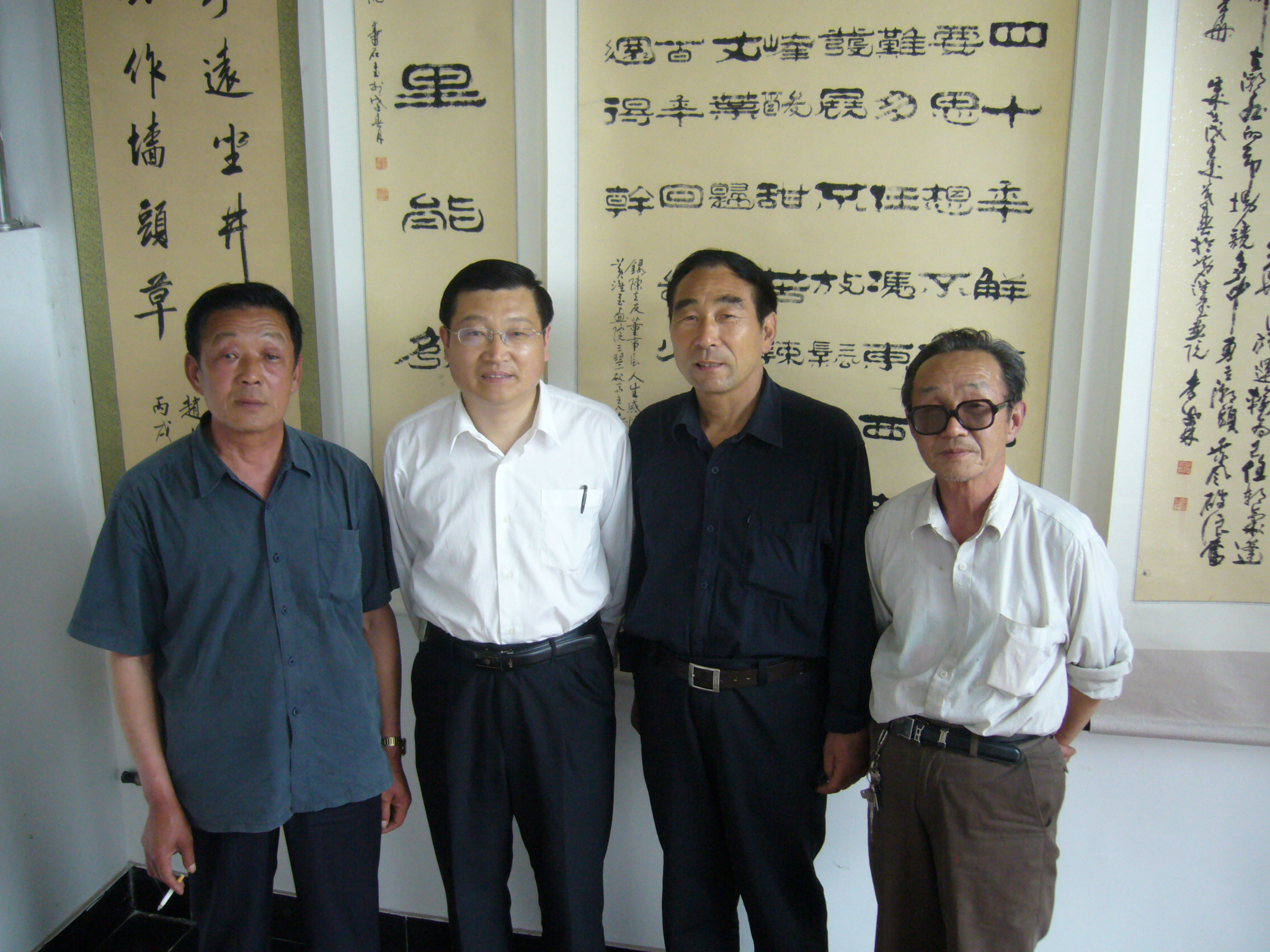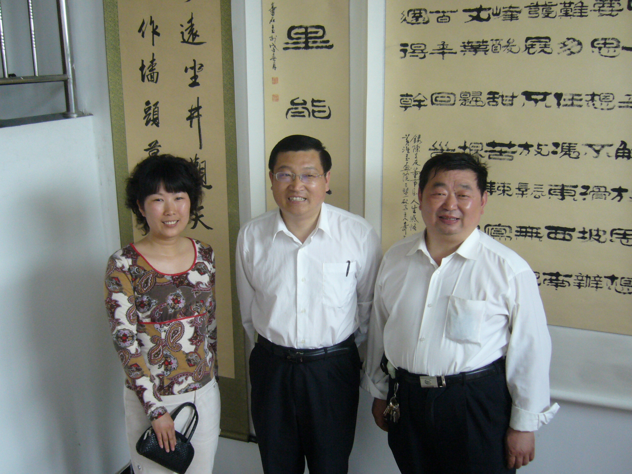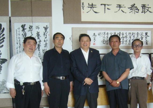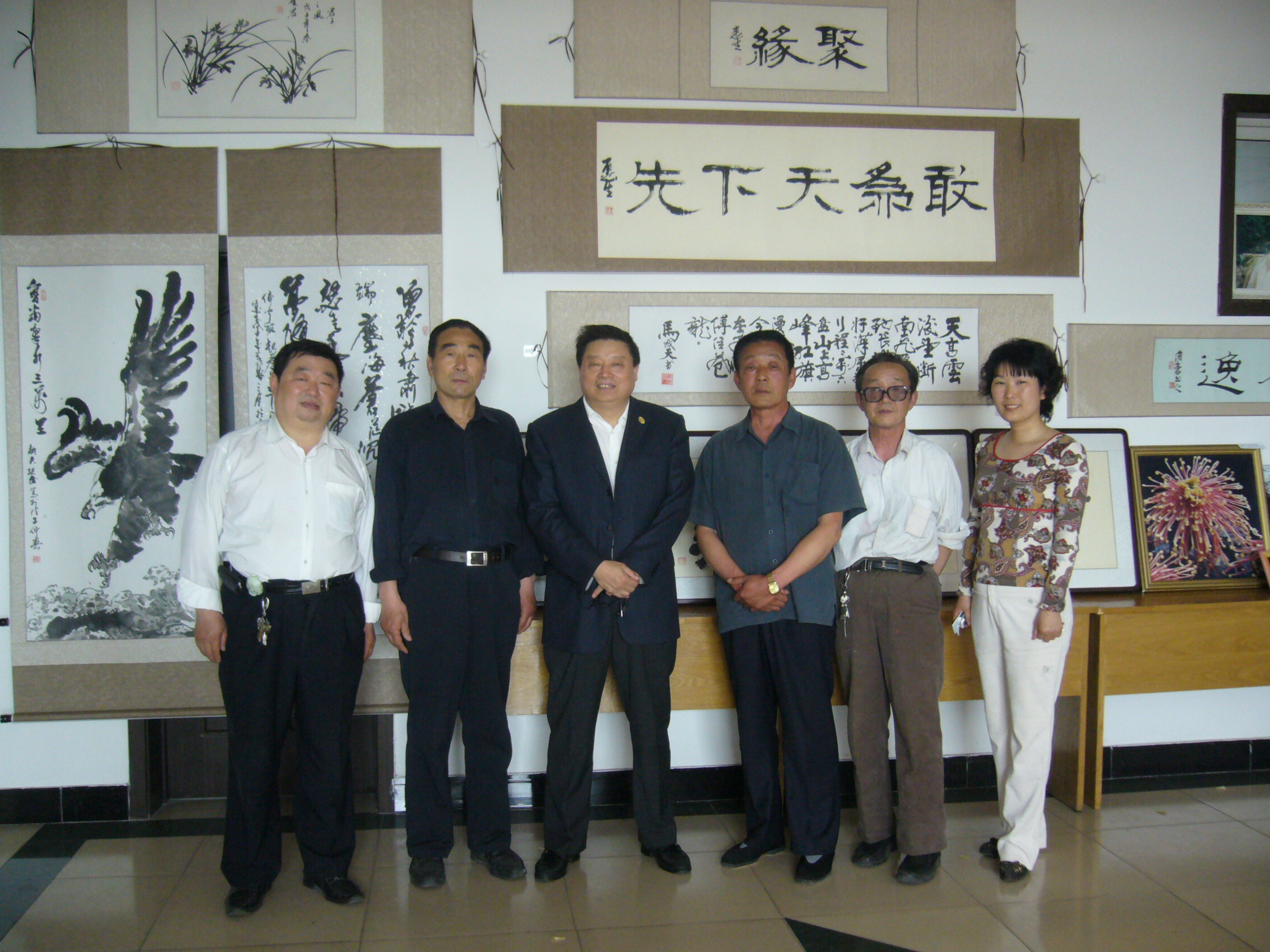 万里集团董事长陈立友、总经理陈立干观看此次书画摄影作品展并与筹备组人员合影留念