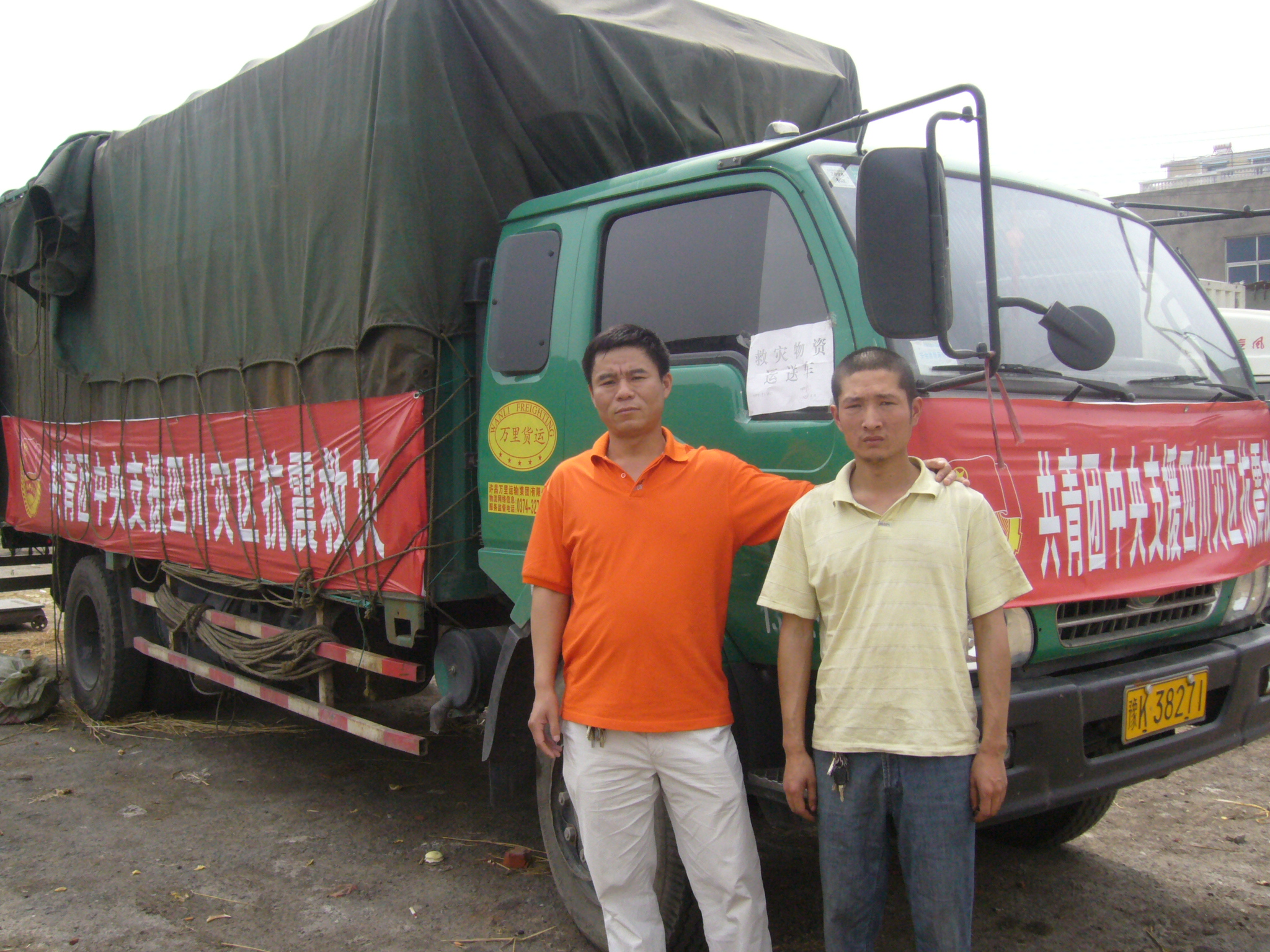 5月12日,在得知四川发生强烈地震后,万里集团134分公司王俊刚和妻子于5月13日立即驾驶车辆豫K-38271赶往灾区,以自己的实际行动为灾区人民做出贡献。
