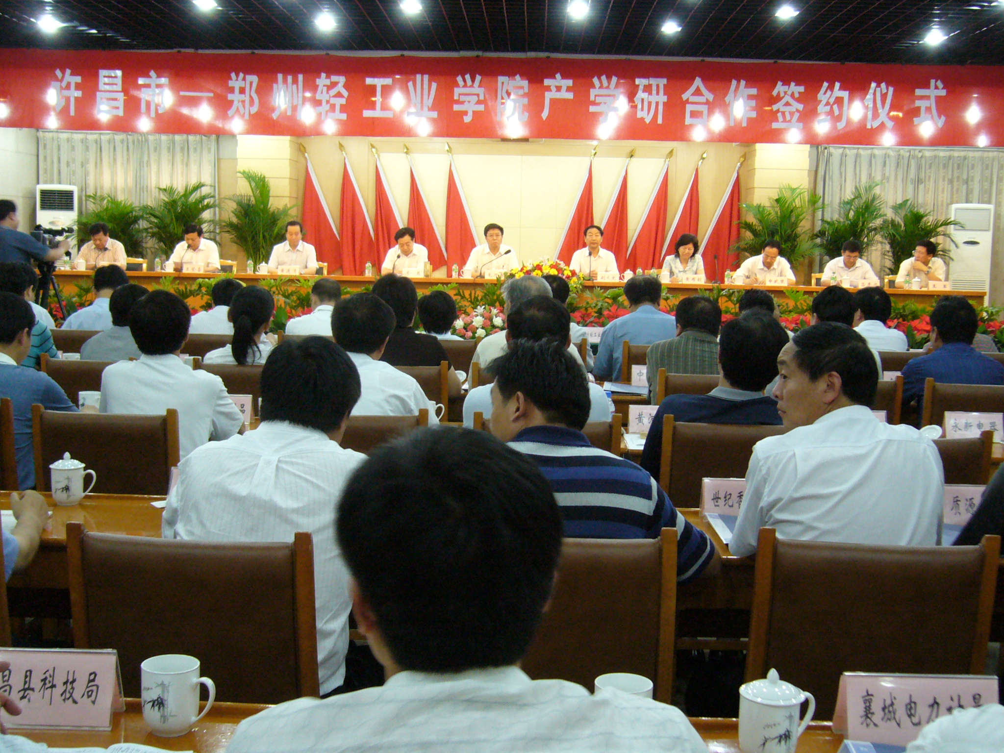 7月4日下午,在许昌市委3号楼会议室召开了“许昌市——郑州轻工业学院产学研合作签约仪式”,许昌市41家企业与郑州轻工业学院签订了51项合作协议。许昌市委书记毛万春、市长李亚到会。万里集团公司党委副书记、总经理陈立干、副总经理程新民、张栋参加了此次签约仪式,并现场签署了合作协议书。