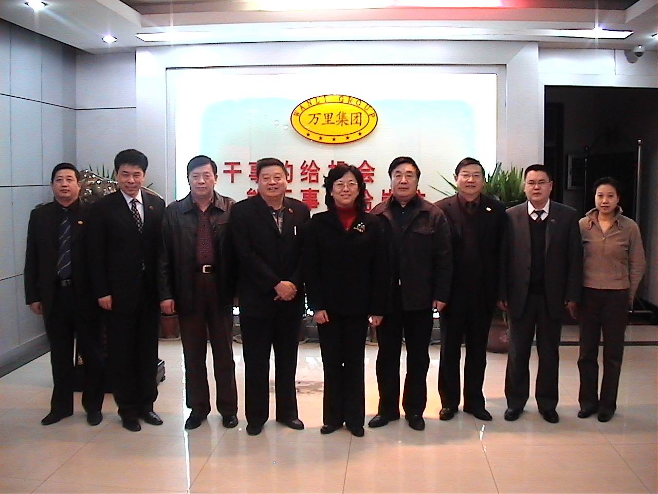 与万里集团公司党委书记、董事长陈立友(左四)、党委副书记、总经理陈立干(右三)、