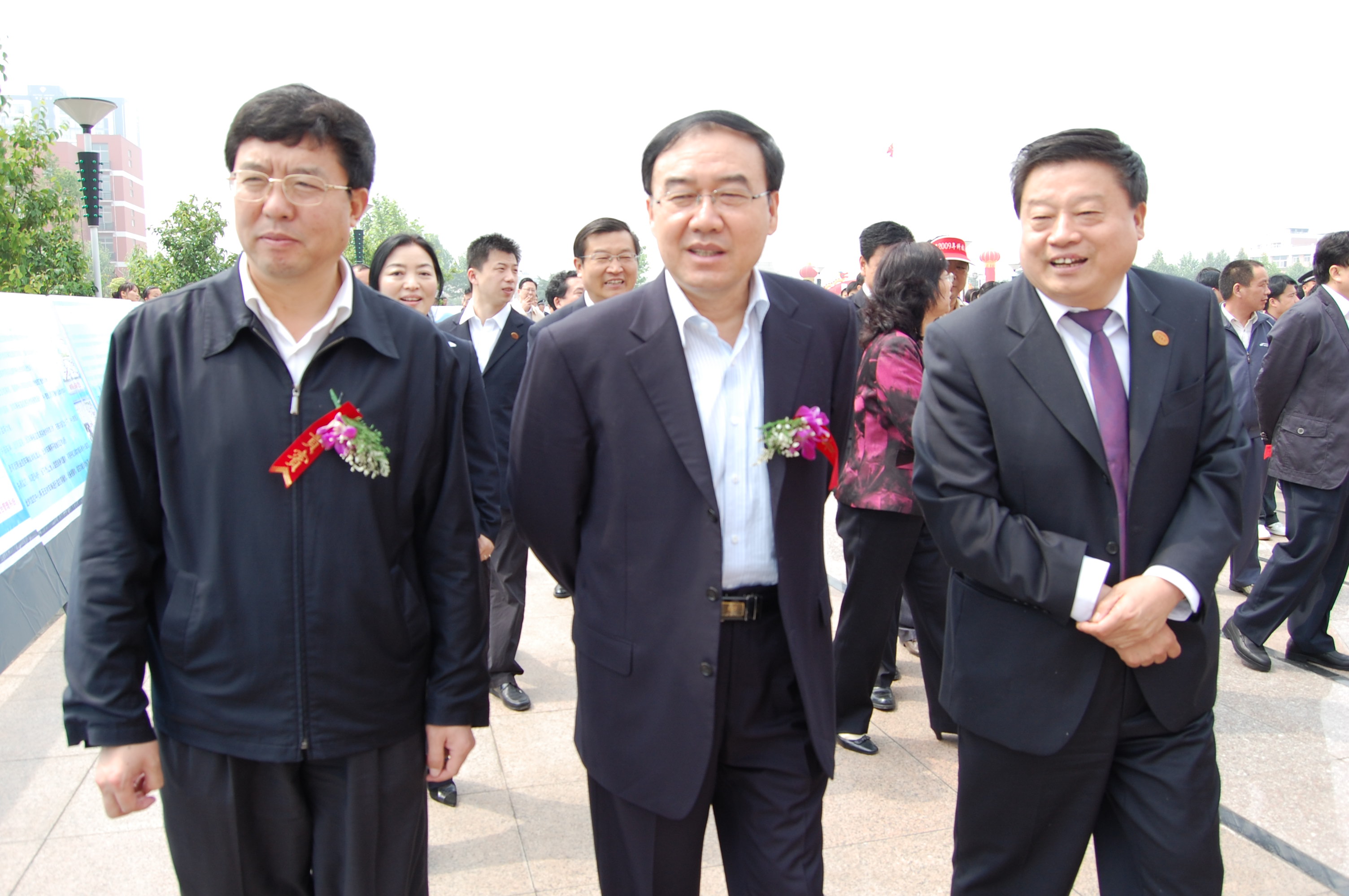 河南省副省长徐济超(中)、中共许昌市委书记毛万春(左)在万里集团党委