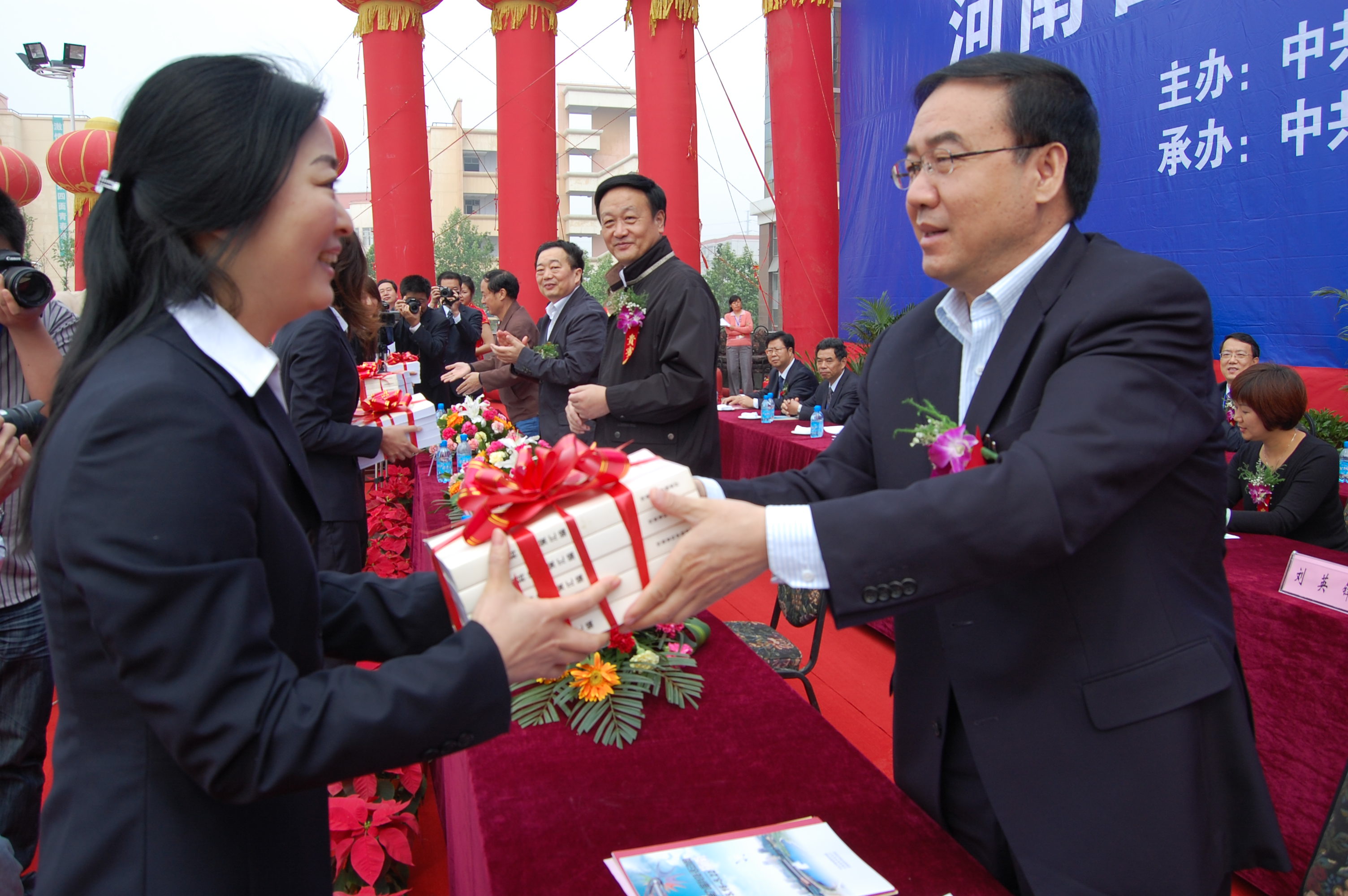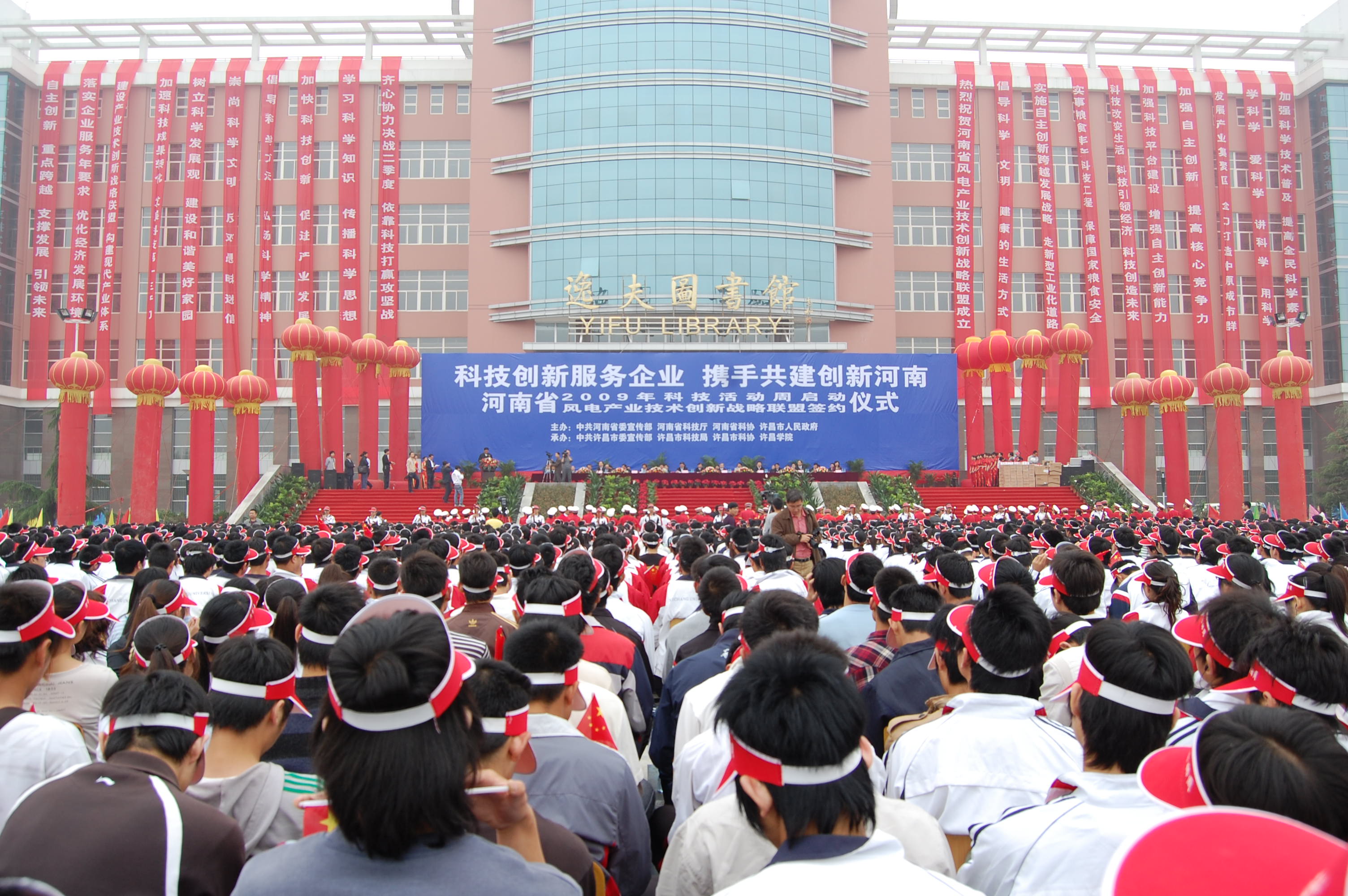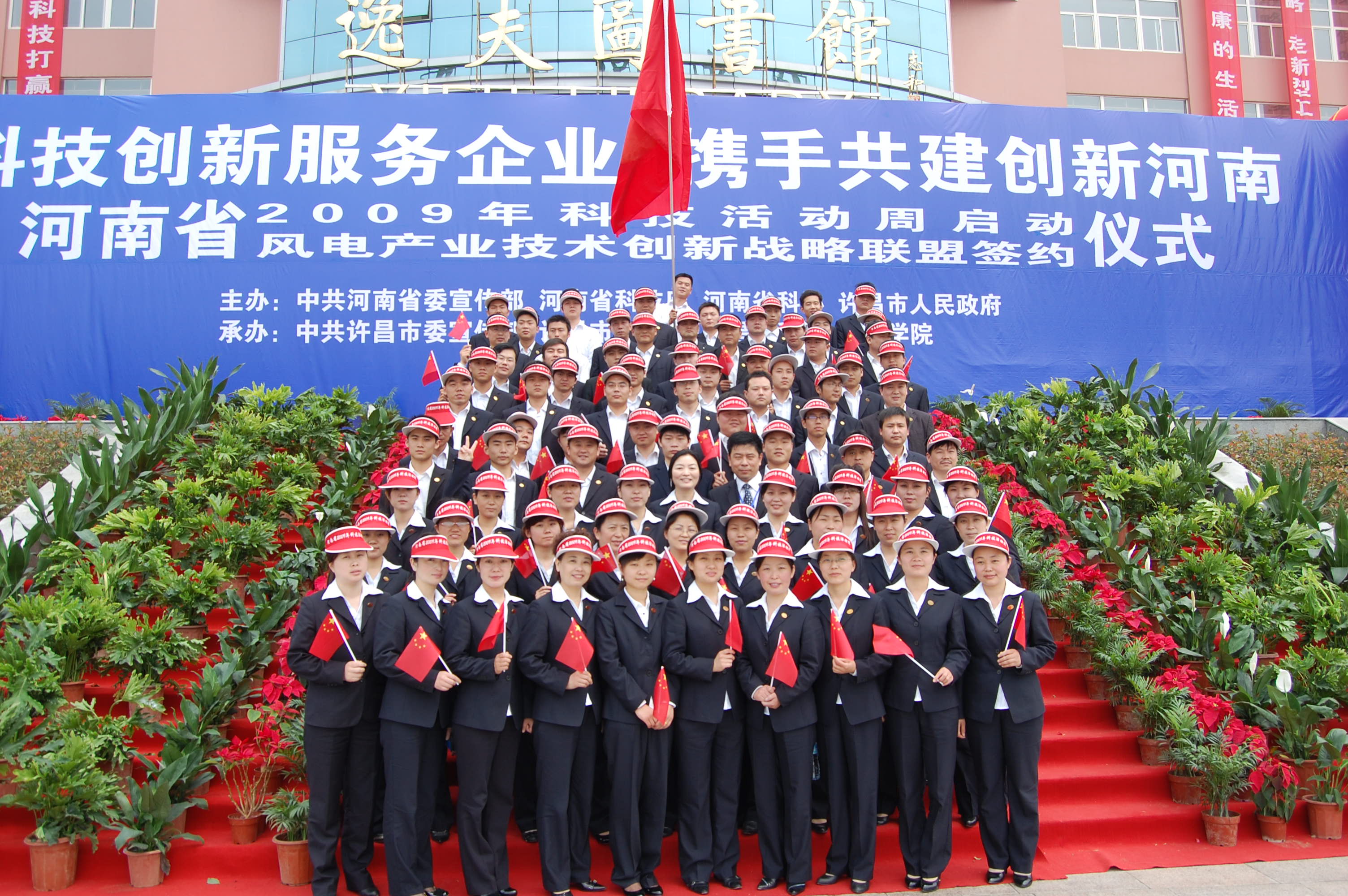 5月16日上午,以“科技创新服务企业,携手共建创新河南”为主题的河南省2009年科技活动周暨风电产业技术创新战略联盟签约仪式在许昌学院隆重举行。河南省副省长徐济超同志出席仪式并发表重要讲话。省委宣传部副巡视员任高潮、省科技厅厅长赵琛、副厅长黄布毅、中共许昌市委书记毛万春、市长李亚、副市长王洪彬出席启动仪式并在主席台就座。李亚市长在启动仪式上致欢迎辞。启动仪式由省政府副秘书长介新主持。徐副省长、毛书记分别为万里集团公司代表刘虹副书记、程新民副总经理颁发了科技书籍。启动仪式结束后,副省长徐济超在省、市有关领导的陪同下察看了在许昌学院弘毅广场举行的“科技广场”宣传活动。