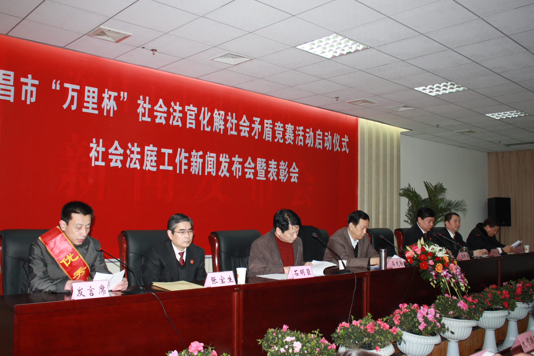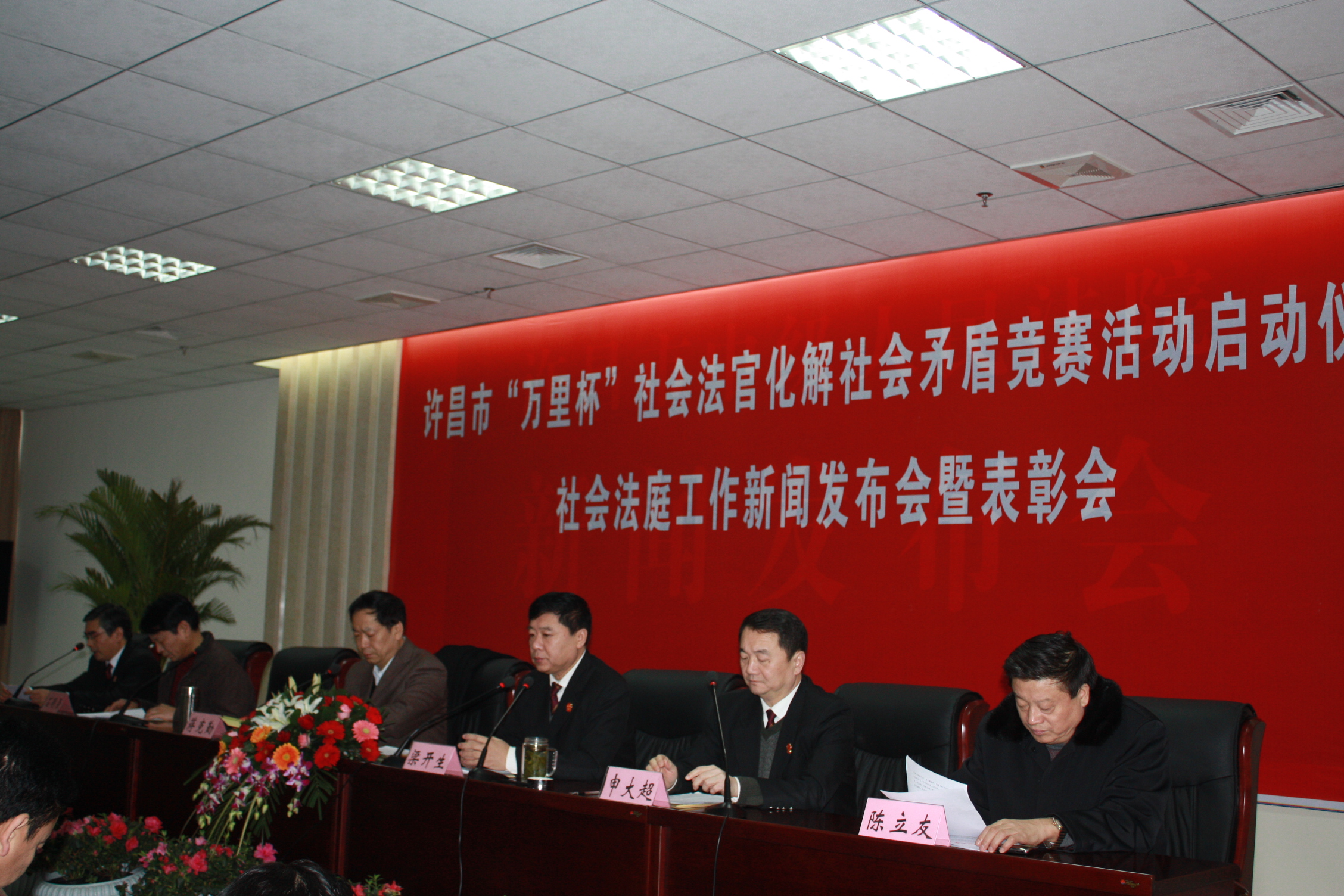 1月29日上午,许昌市“万里杯”社会法官化解社会矛盾竞赛活动启动仪式、社会法庭工作新闻发布会暨表彰会在许昌市中级人民法院召开。市委常委、政法委书记蒋克勤,市委宣传部副部长、许昌日报社党委书记、社长石明臣,许昌万里运输(集团)有限公司党委书记、董事长陈立友,副总经理琚兵营等出席会议。万里公司法律部部长郑鹏获评“许昌市2010年度优秀社会法官”荣誉称号并作代表发言。
