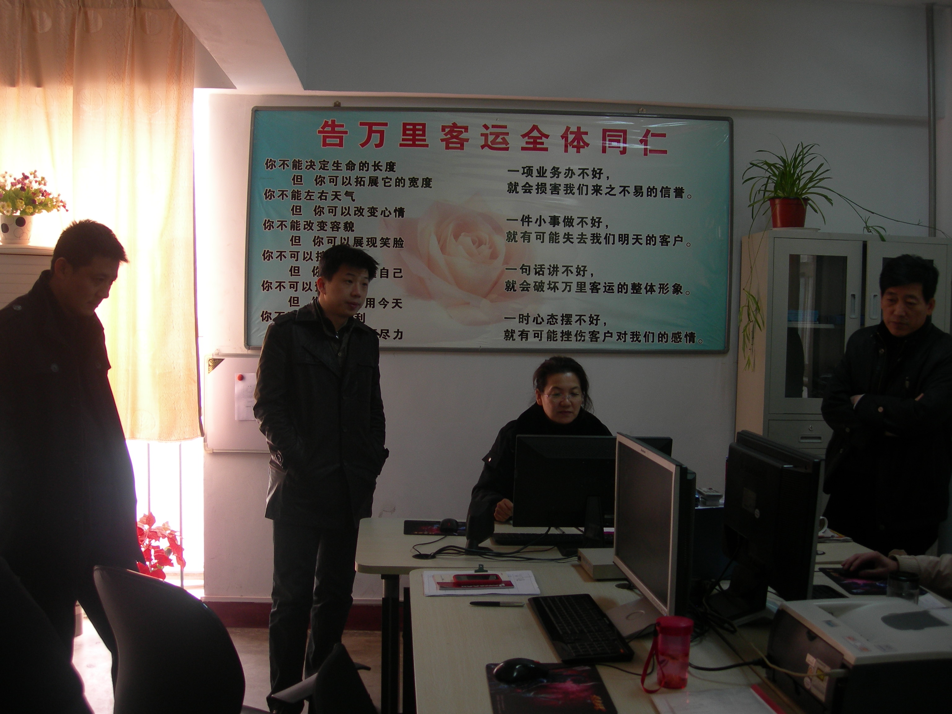 在中心汽车站和万里客运GPS监控中心,交通局副局长徐跃红一行询问了中心汽车站春运准备工作、GPS监控中心工作人员监控情况,查看了监控记录,系统的了解了万里客运GPS监控系统的工作流程。他强调:春运工作是全国上下的一件大事,而承载着重要运输任务的客运车辆事关广大旅客的生命财产安全,直接关系到乘客的切身利益,春运期间安全工作要加大力度,充分发挥客运GPS监控的作用,扎扎实实打好春运道路交通安全攻坚战。