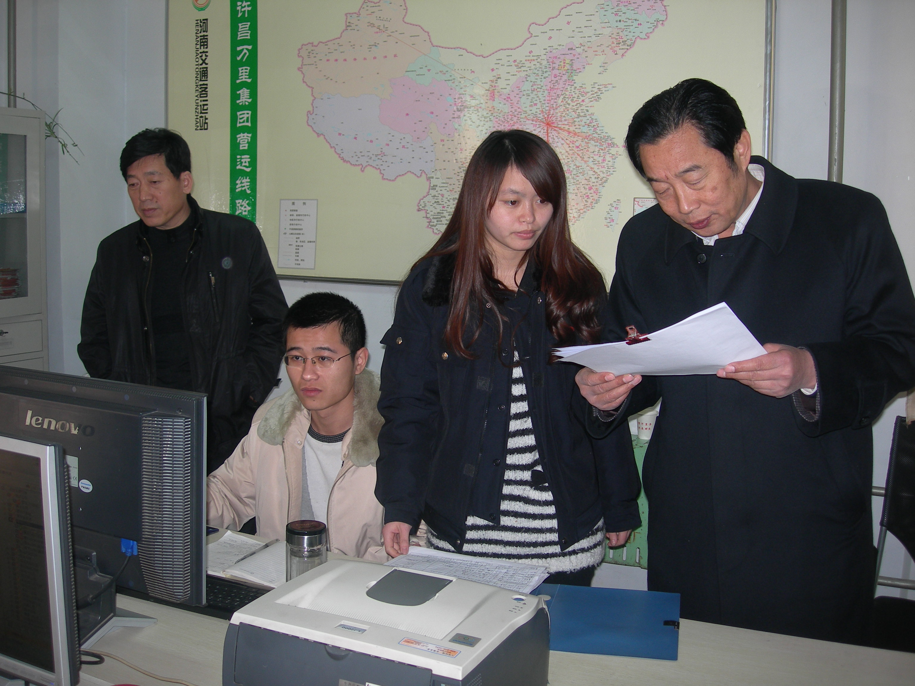 1月5日,许昌市交通局副局长徐跃红、助理调研员宋振宇在万里集团总经理陈宇飞和副总经理王柏强、叶红举、中心汽车站站长焦落实、万里客运GPS监控中心主任吴立美等人的陪同下到中心汽车站、万里集团公司客运GPS监控中心检查指导工作。