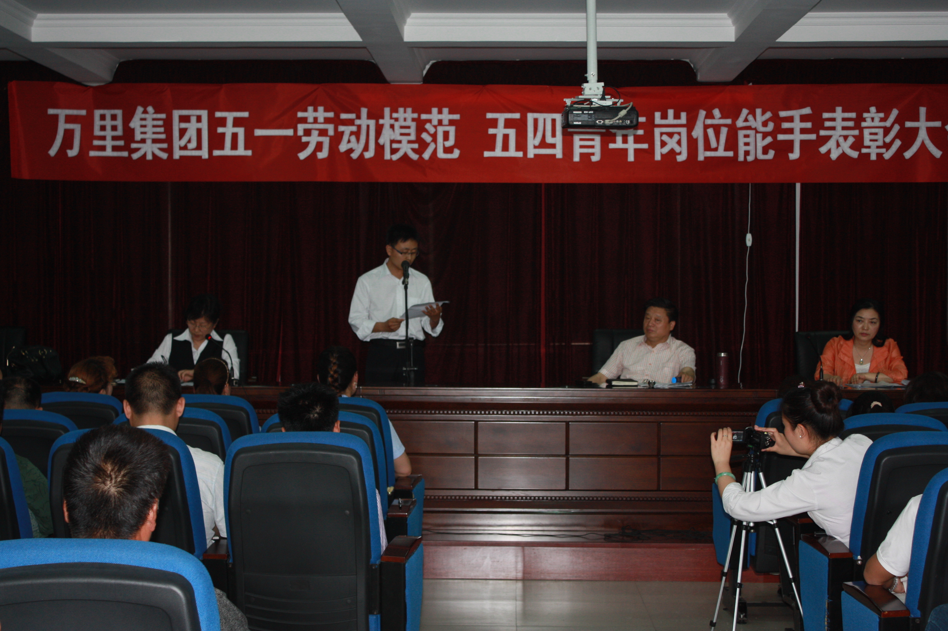 首先,侯总宣读了会议纪律,并对会议的主要议程做了介绍。集团公司党委副书记、纪委书记刘虹宣读了《关于表彰万里集团“五一劳动模范”的决定》和《关于表彰万里集团“五四青年岗位能手”的决定》,并公布了荣获“五一劳动模范”和“五四青年岗位能手”的名单。