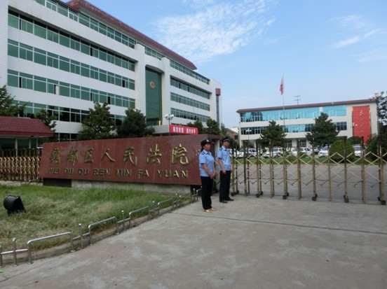 万里物业服务有限公司员工在许昌市魏都区法院门卫执勤