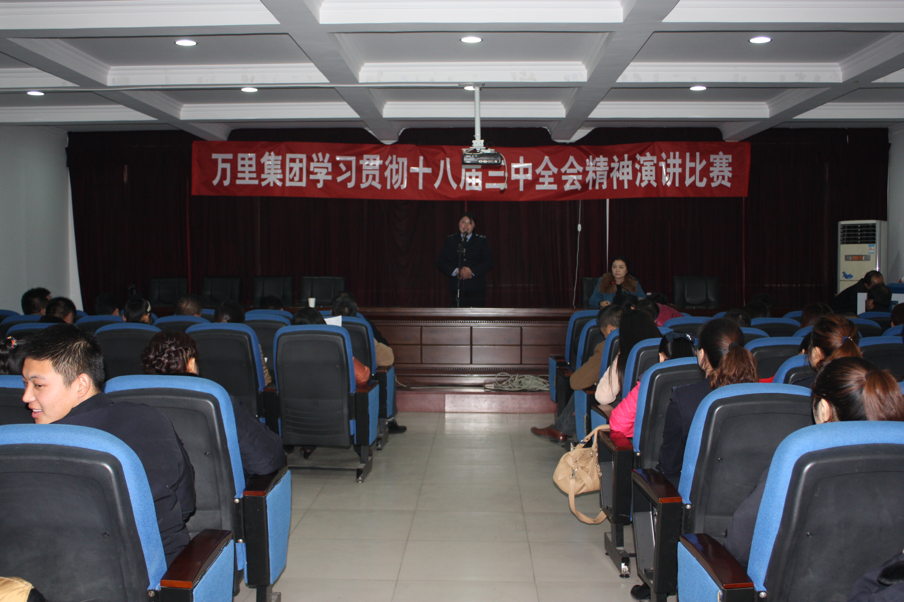 12月13日,按照许万里【2013】85号文要求,万里集团“认真学习十八届三中全会精神,坚持在改革创新中推动企业发展”主题演讲比赛在万里梨园物流园科技楼五楼会议室隆重举行。万里运业董事长陈立干,集团公司总裁陈宇飞以及集团公司多位副总经理、部长出席本次演讲比赛并担任比赛评委。集团公司党委副书记刘虹主持演讲比赛。