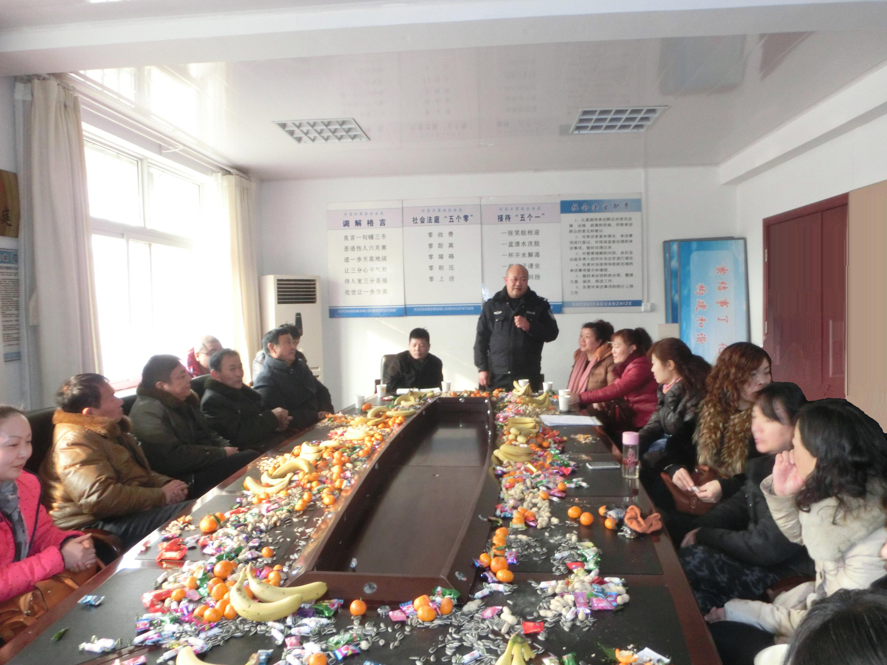 会上首先对2013年各项目标任务完成情况进行了认真的总结,分析了2014年面临的形势和任务。五一路派出所社区民警大队大队长王松钦、五一路办事处司法所所长牛发业、兴华办事处工农社区主任郑荷花,分别进行了发言并送上美好祝愿;参会人员也都畅所欲言表示出了对今后积极的工作激情,会场气氛热烈欢快。