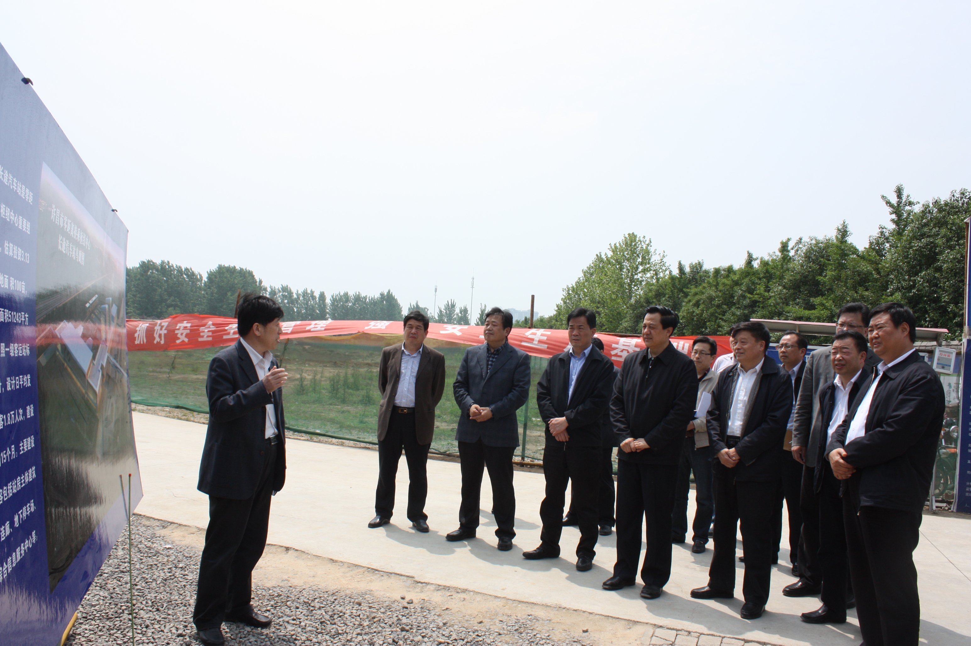 在零换乘枢纽中心长途汽车站项目建设工地,市东城区党工委书记朱发业、交通运输局局长张书杰向王书记进行了项目交流。市交通运输局副局长徐跃红从“严抓工程的质量、安全、程序、工期”四个方面向莅临项目工地的领导汇报了项目的进展、工期的安排、目前主要在做的工程及施工过程中遇到的问题。