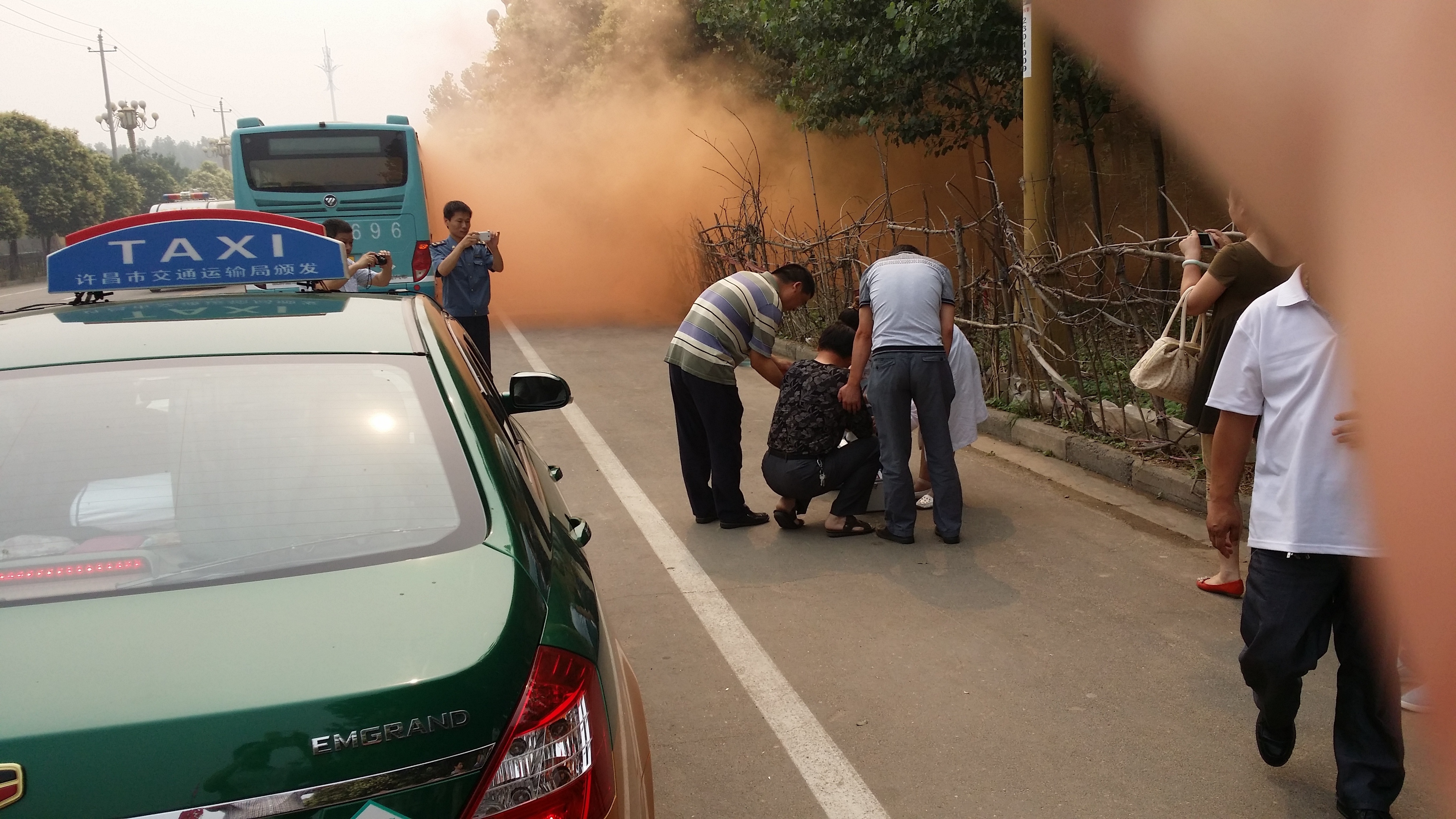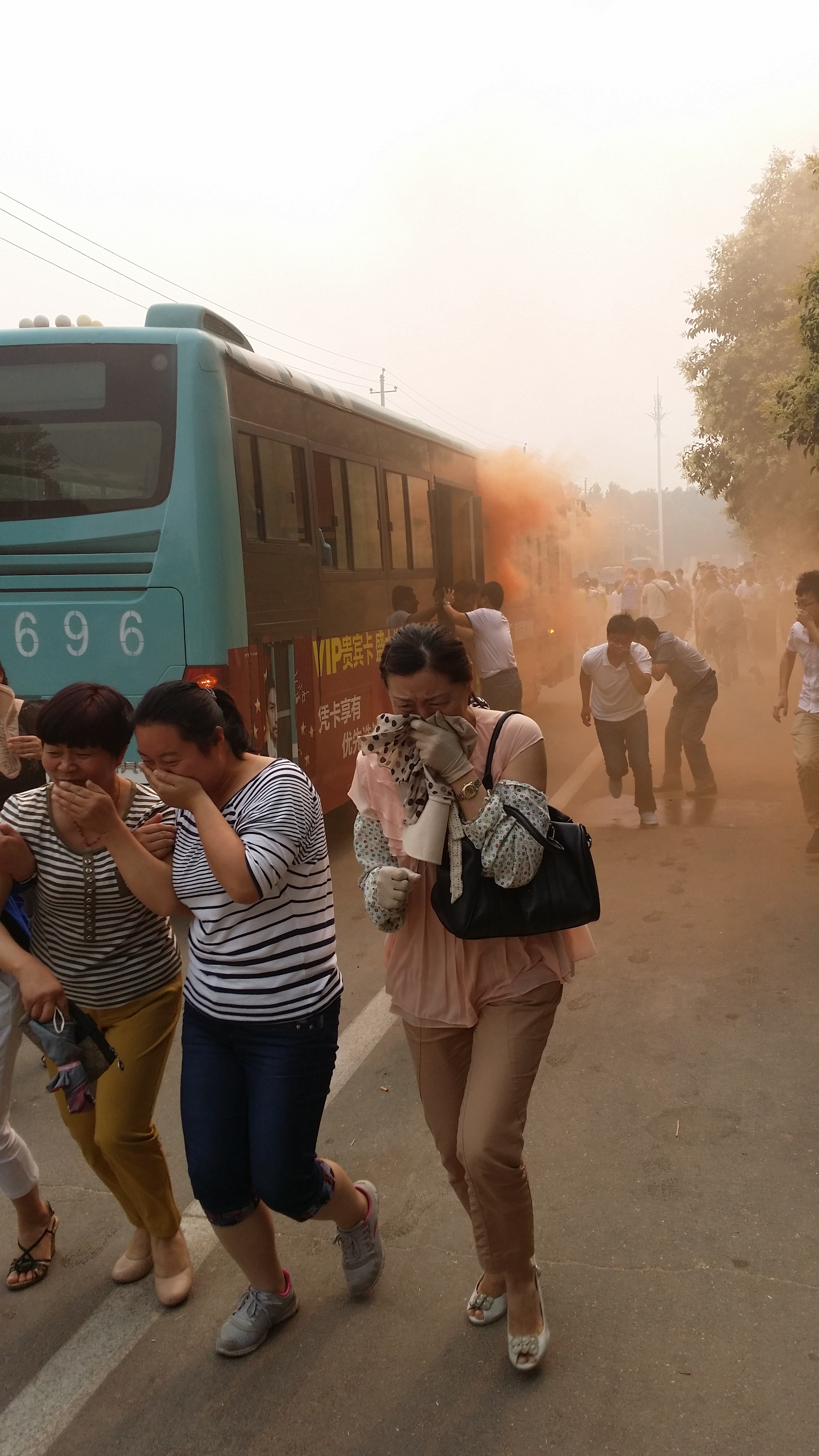 6月11日上午9点30分,许昌市魏文路发生恐怖分子劫持公交车事件,许昌万里五星出租车分公司车牌号为豫KT-9700的司机李明军发现案情后立即拨打110报警,随即又通知公司,公司得知消息后立即通过电召服务平台组织20余台车辆和30余人次赶往现场应急。到达现场后,根据公安部门安排,五星公司20余台车封堵了道路,防止车辆和人员误入现场受到伤害,恐怖分子被武警部队包围后依然负隅顽抗,点燃了车辆并投掷燃烧弹和烟雾弹等爆炸装置,就在这关键时刻,恐怖分子被武警当场击毙,大量伤员涌出车厢,五星公司员工和驾驶员迅速组织疏散和抢救群众,伤势较重的群众被现场应急的出租车安全转移到附近医院接受治疗,其中五星公司20余台车辆共转移受伤群众25人次 ……如此惊心动魄的场面,正是由市城市公共交通管理处、武警支队、市公安局等部门组织的反恐演习,万里五星出租车分公司积极参与了此次演练。