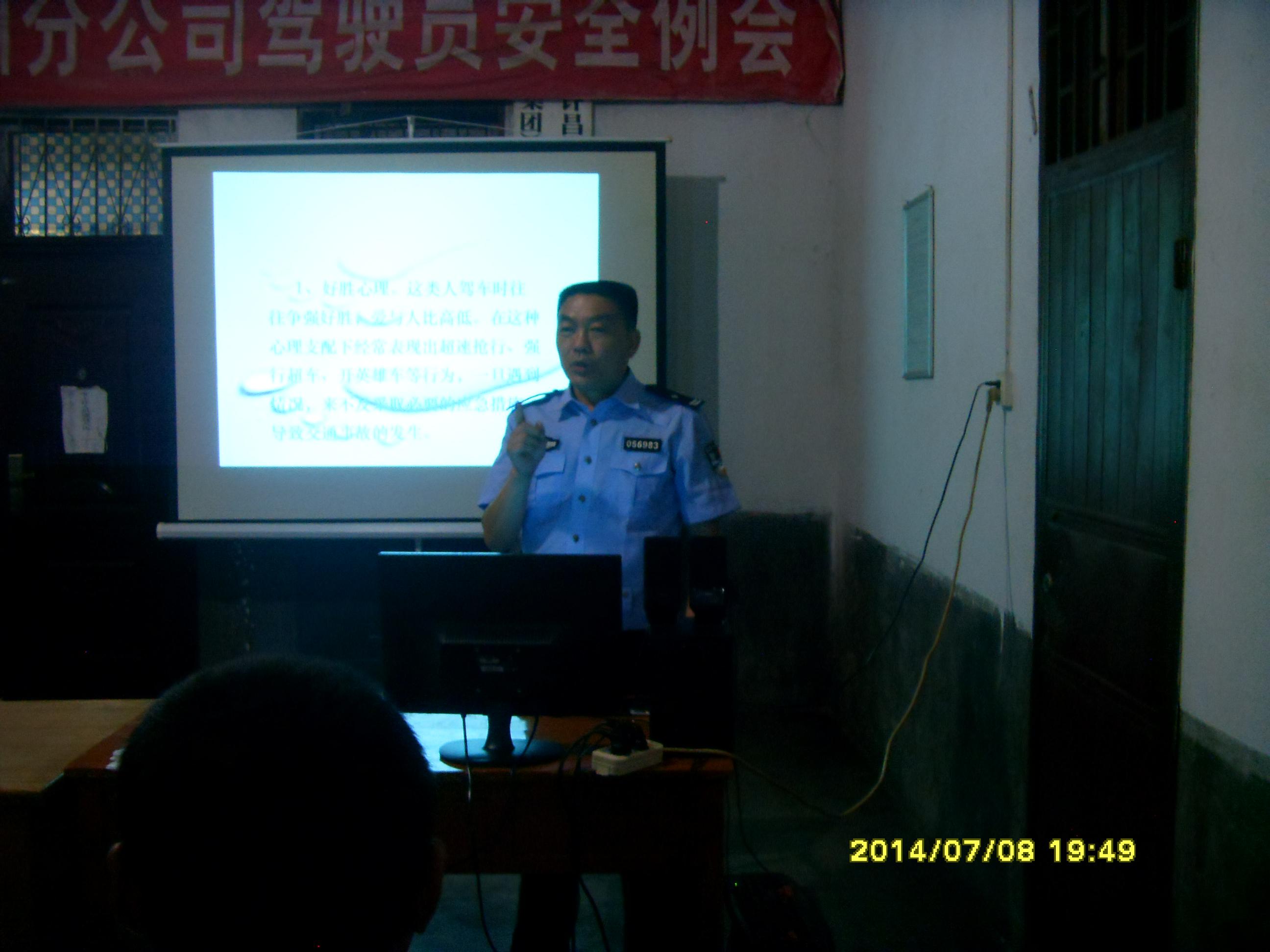 为了更好的提高驾驶员职业道德素养和安全驾驶意识,确保夏季炎热天气下,驾驶员心理健康,安全驾驶车辆,禹州公司安技科特别邀请禹州公安交警大队唐君山队长,在2014年7月8日晚上,对禹州公司驾驶员进行了驾驶员职业道德教育。