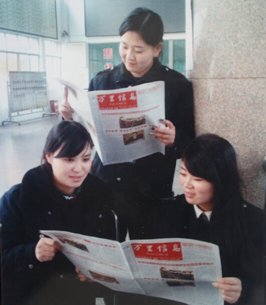 每月,《万里信息报》都会按时发放到我们每个基层员工手中,皇甫站长要求我们要仔细认真的阅读。《万里信息报》是职工信息共享的平台,从每期的信息报中我们可以及时的了解到集团公司在发展的道路上前进的步伐和荣获的各项荣誉,同时也能看到各个兄弟单位在开展工作时开拓创新的新方法,好措施。我们可以取长补短、虚心借鉴,以兄弟单位的荣誉来激励我们奋勇直前。