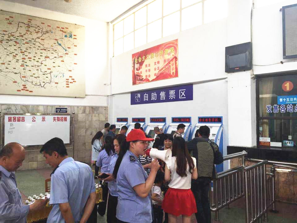 万里运业中心汽车站推行使用自助售票机送饮料活动