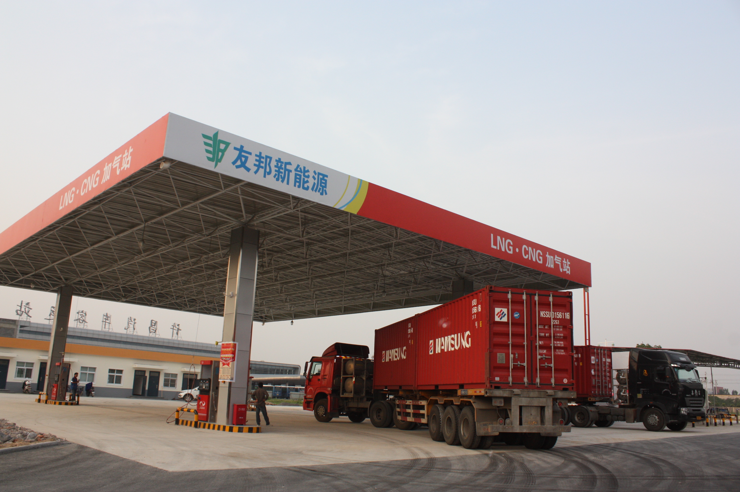 据友邦新能源有限公司总经理段国强介绍,该加气站共投入五百余万元,占地面积四千多平方米,目前是许昌市最大的双气(LNG、CNG)加气站。该站的投入使用,将极大方便使用LNG、CNG的各类型营运客车、货车、出租车、私家车加气。其中,CNG加气点有两台加气机、四把加气枪,LNG加气点有两台加气机、两把加气枪,场地宽敞,方便车辆出入、行车、加气,可以有效的缓解加气车辆排队的问题,减少等候时间,方便车辆出行。