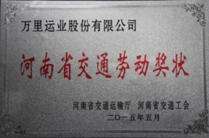 根据《河南省“交通劳动奖状”、“交通劳动奖章”评选管理办法》,经许昌市交通运输局审核,省交通运输厅、省交通工会授予万里运业“河南省交通劳动奖状”荣誉称号。