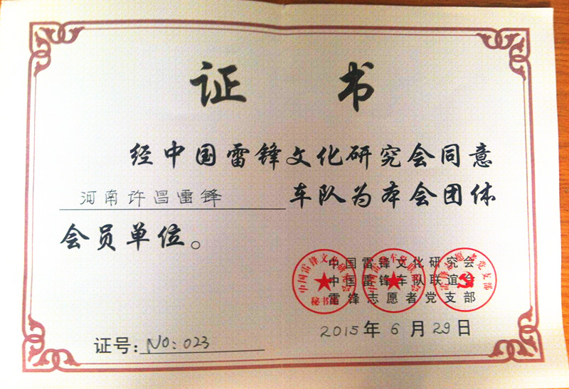 6月28号,万里出租车公司豫KT9529司机卢国平(许昌市出租车雷锋车队队长)代表许昌市出租车雷锋车队前往北京参加全国出租车雷锋车队先进经验交流座谈会。会上,中国雷锋文化研究会、中国雷锋车队联谊会、雷锋志愿者党支部向许昌雷锋车队颁发了会员单位证书。至此许昌出租车雷锋车队自2014年3月7日成立以来获得了国家相关部门的正式认可。未来的工作,我们会再接再励,弘扬雷锋精神,传播正能量。