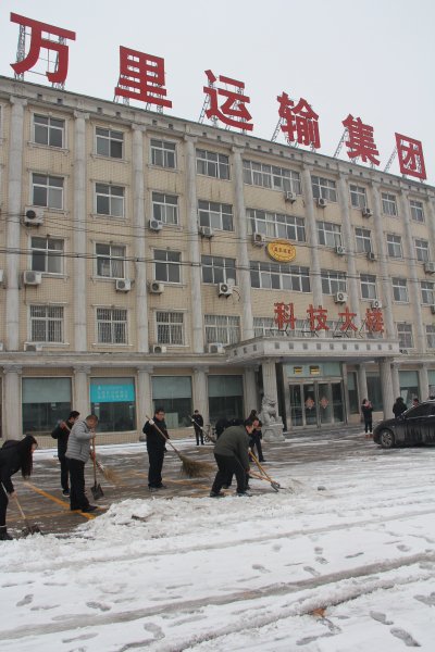 25日,集团公司组织各个部室展开积雪清扫活动。集团公司总部、万里运业机关、万里货运机关各部门员工不畏严寒,积极参加,纷纷拿起铁锹和扫帚,一点一点地将积雪集中堆放,然后再用推车将积雪推出去。整个扫雪过程中,大家配合默契,干的热火朝天,不亦乐乎,忙碌的身影构成了一道亮丽的风景线。虽然室外温度很低,但大家劳动的热情和团结的力量让这个冬日变得格外温暖。