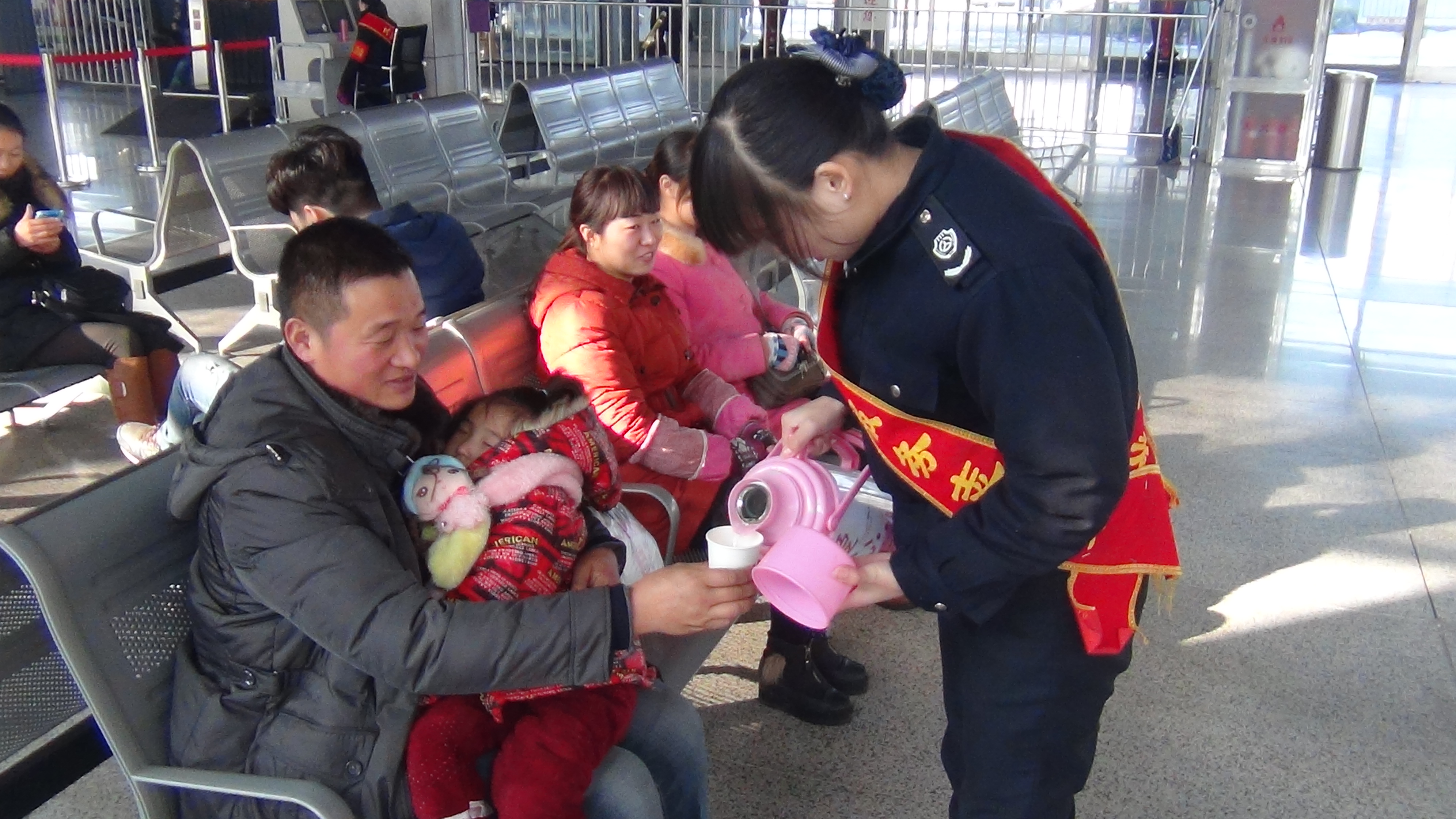 2、为旅客提供最大限度的帮助和需求:为保证茶水的足量供应,汽车站启用了备用茶炉,全天提供免费开水。为旅客提供免费手机充电,并提供免费wifi,增设“小心地滑”温情提示牌,志愿服务人员循环为老、弱、病、残、孕等特殊旅客提供爱心开水。