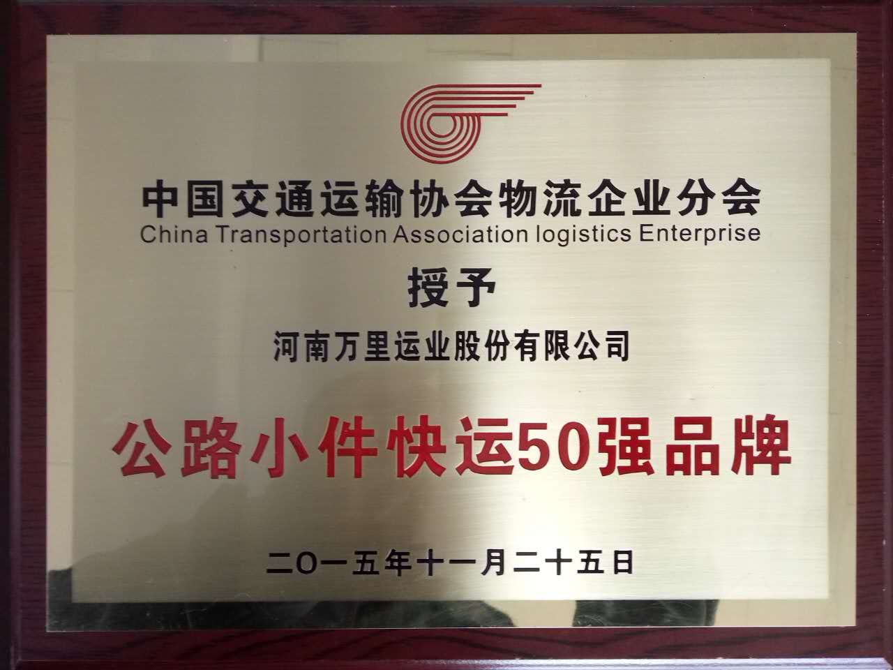 万里运业小件快运荣获“中国公路小件快运50强品牌”