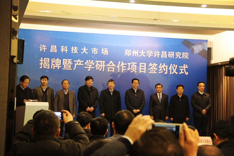 1月11日上午,许昌科技大市场、郑州大学许昌研究院揭牌暨产学研合作项目签约仪式在许昌高新区(许昌城乡一体化示范区)科技企业孵化园隆重举行。市委书记王树山,市长武国定,中国工程院院士、郑州大学校长刘炯天,中国工程院院士、郑州大学水利与环境学院院长王复明,郑州大学副校长王宗敏,中科院河南产业技术创新与育成中心主任吕纯操,市委常委、市政府党组成员李建民,许昌城乡一体化示范区党工委书记王宏伟,万里运业董事长陈立干及中科院合肥物质科学研究院有关人员参加仪式。仪式由李建民主持。