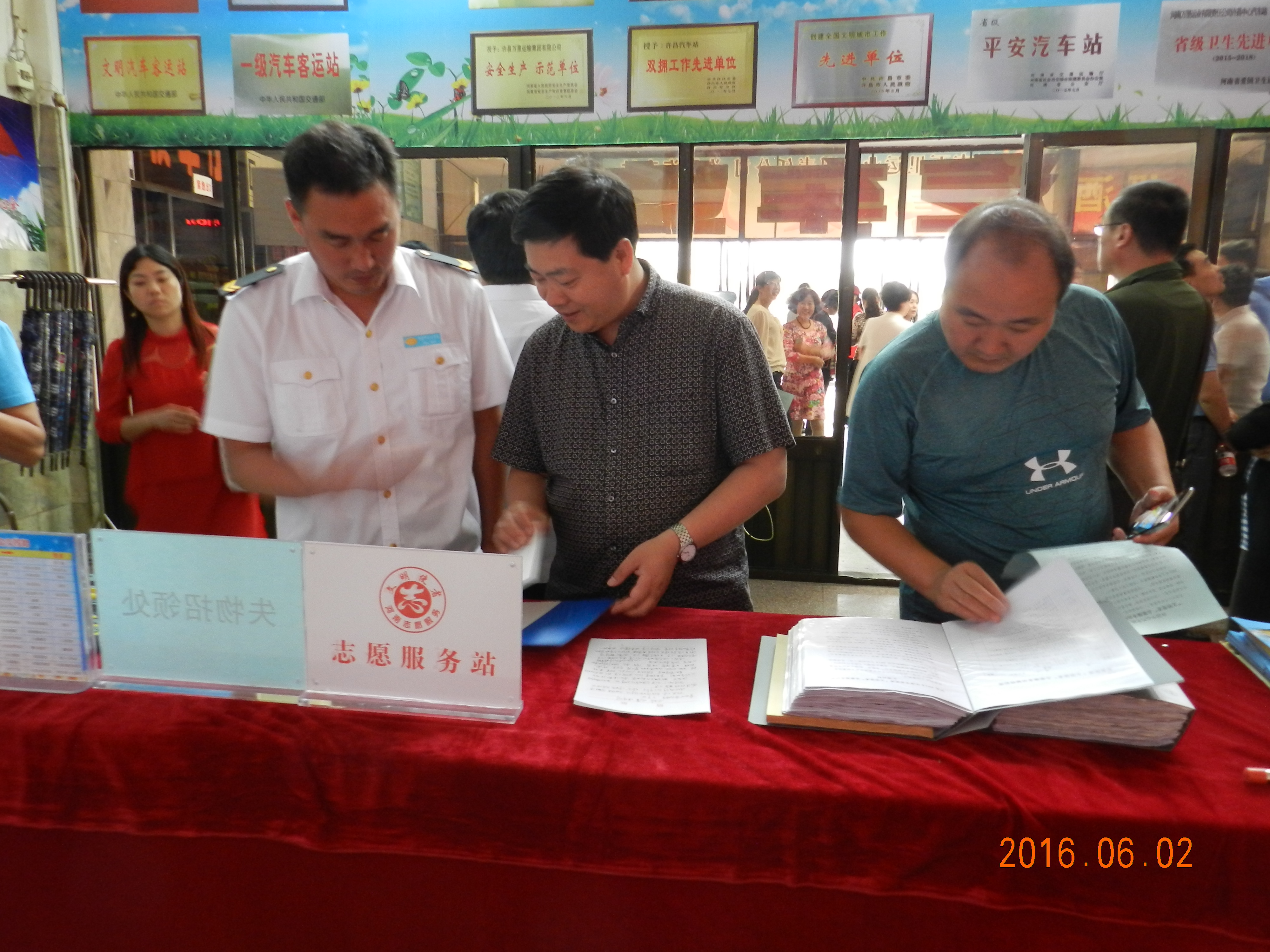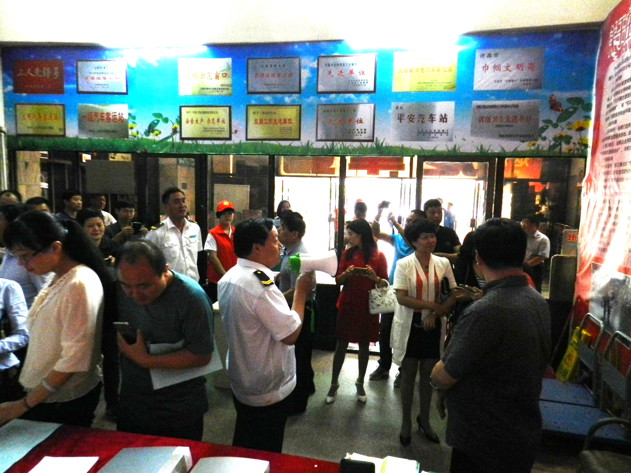 2016年6月2日下午,许昌市精神文明建设指导委员会组织禹州市、长葛市、许昌县、鄢陵县、襄城县、魏都区、东城区、开发区、新区的参观观摩团,在许昌市文明办主任刘明君的带领下,由中心站站长陈鹏波陪同莅临许昌中心汽车站参观观摩“文明使者志愿服务站”。