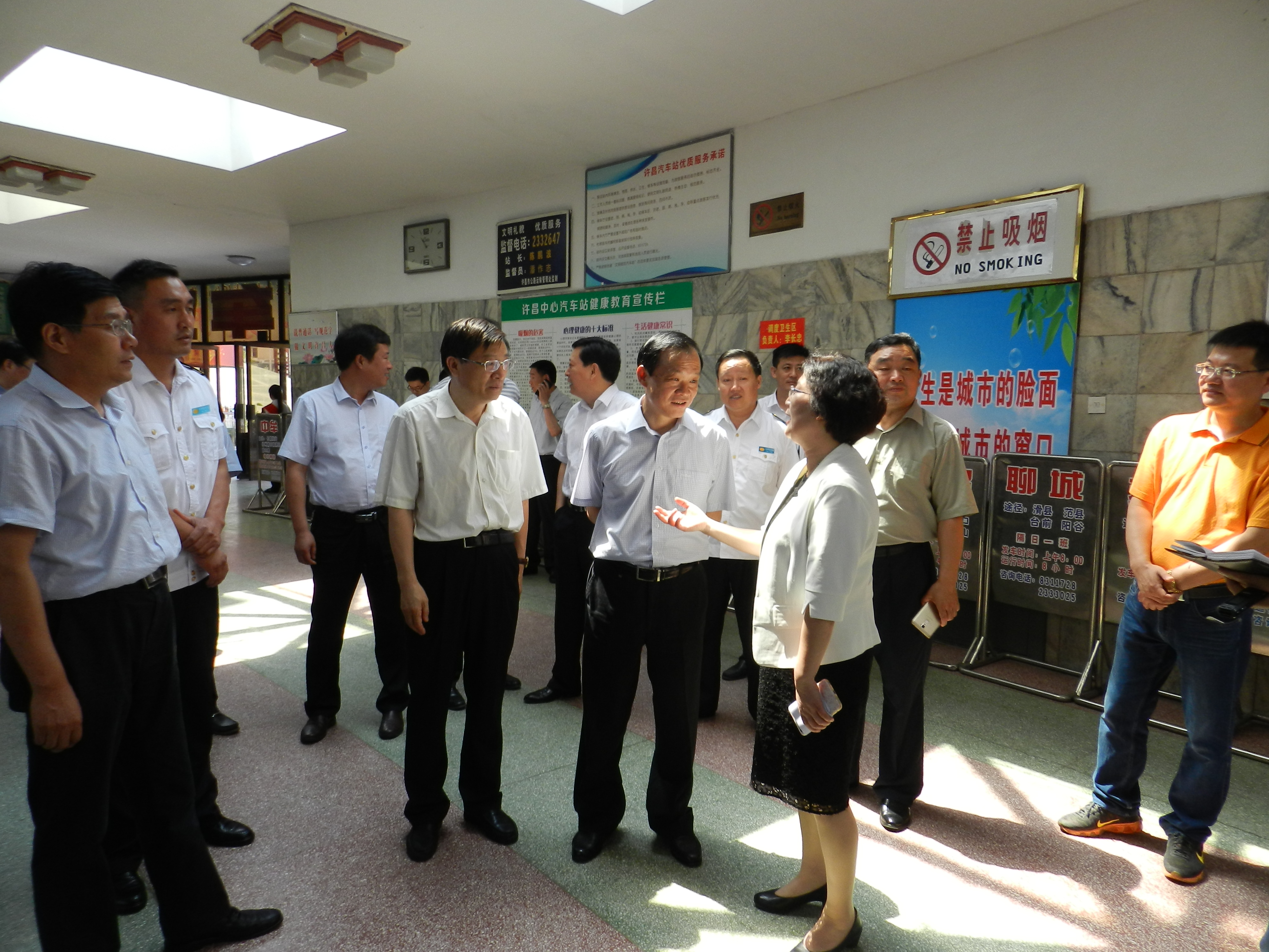6月27日上午,许昌市市长胡五岳、副市长王志宏一行莅临许昌中心汽车站检查指导创卫工作。许昌市交通运输局局长郭栋超、副局长白文山,许昌市道路运输管理局局长马骏骊、党总支书记胡凯,万里运业董事长陈立干、总经理王柏强、副总经理张建峰、中心汽车站站长陈鹏波予以陪同。
