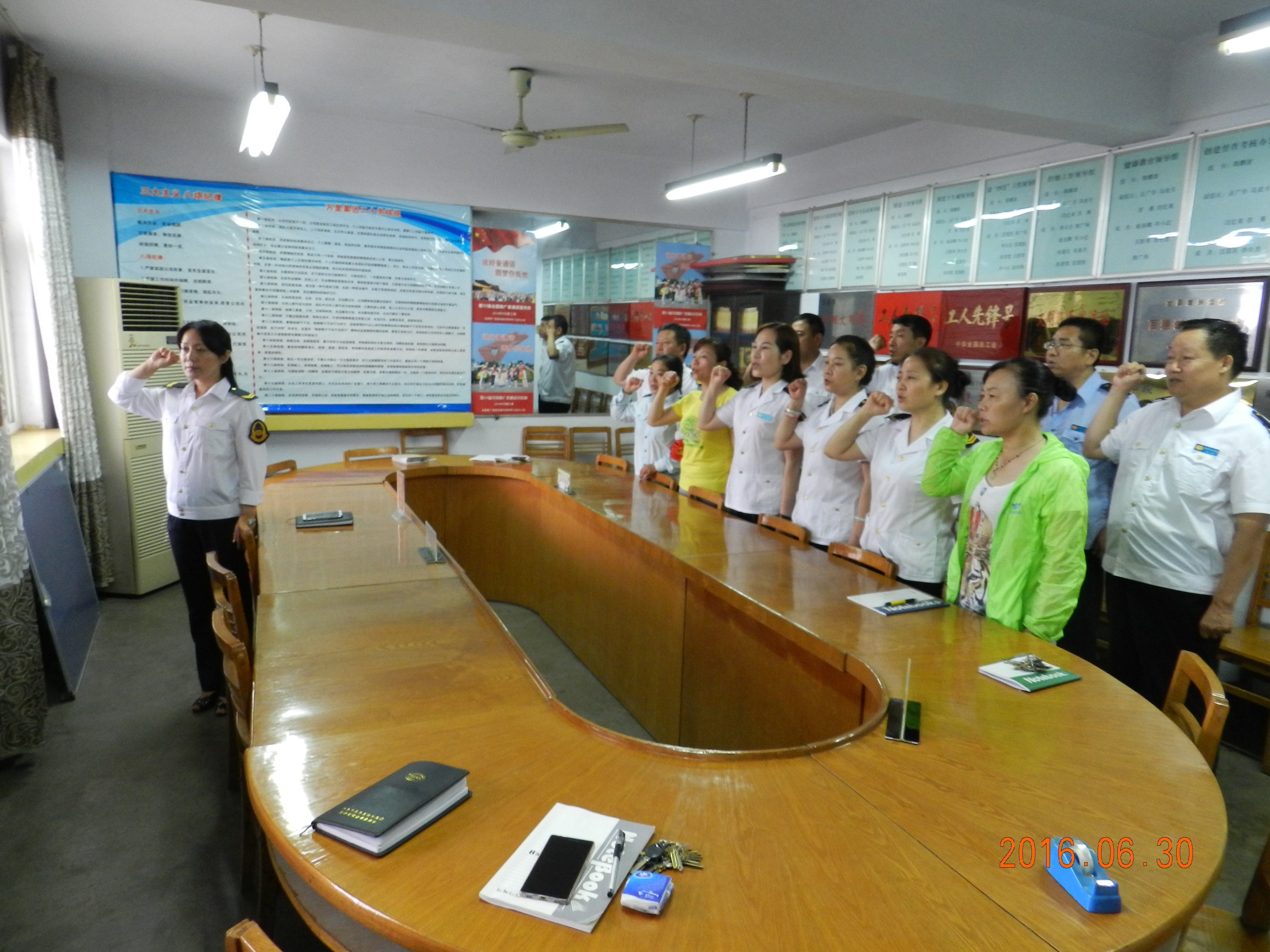 “我志愿加入中国共产党,拥护党的纲领,遵守党的章程............。”6月30日下午4点30分,在伟大的中国共产党诞辰95周年之际,许昌中心汽车站全体党员,在二楼会议室举行了“重温入党誓词,不忘入党初心”集体宣誓活动。