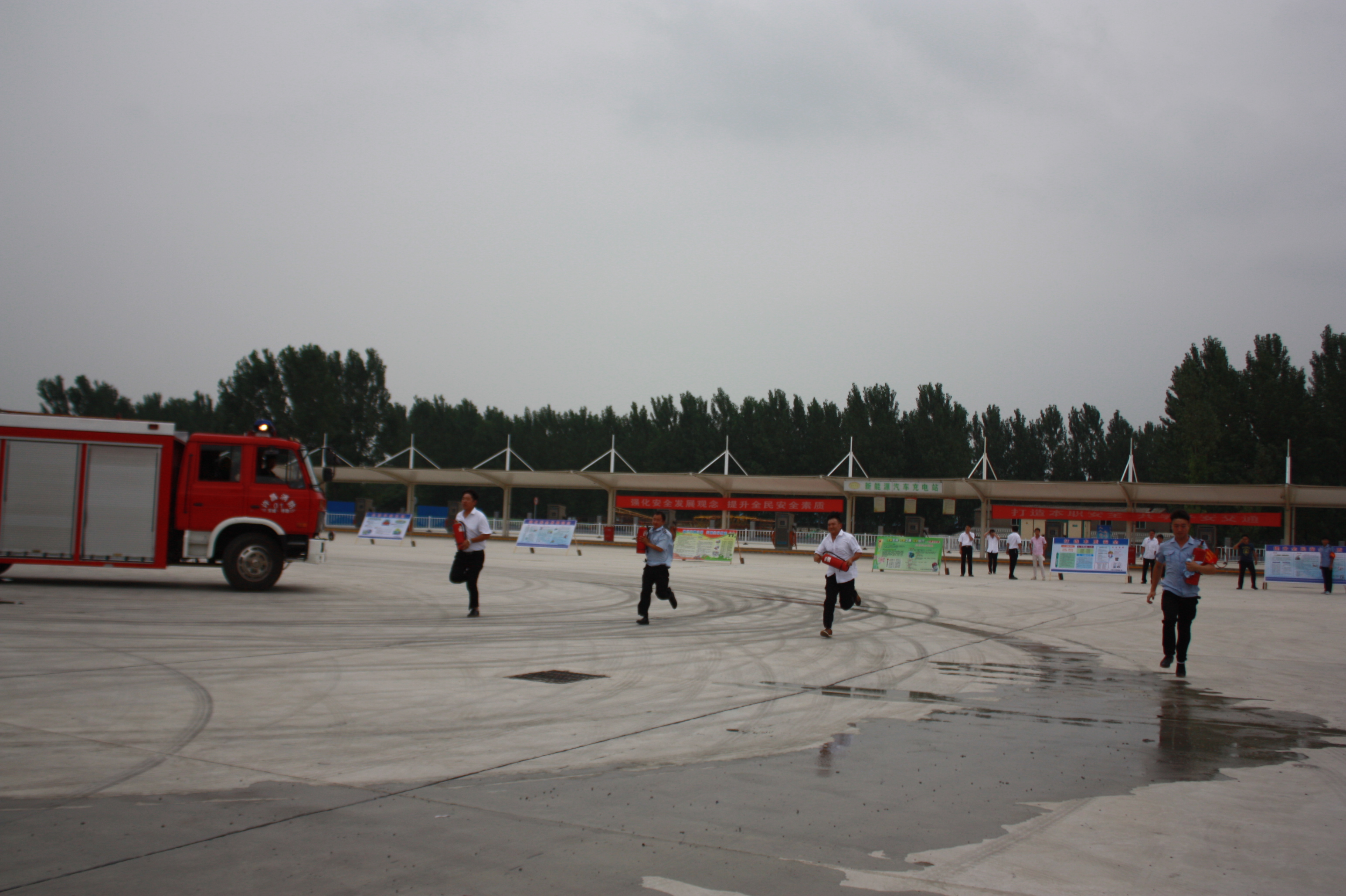 省交通运输厅安监处副处长岳跃军、省道路运输管理局副局长华志坚、市公安局交通管理支队支队长郭新华、副支队黄文义,市安全生产监督管理局副局长张全友、应急救援科科长刘国红、市公安消防支队主任孟庆林、市交通运输局常务副局长、市道路运输管理局副局长、许昌万里运输集团总裁陈宇飞、万里运业总经理王柏强出席观看此次综合应急救援演练。