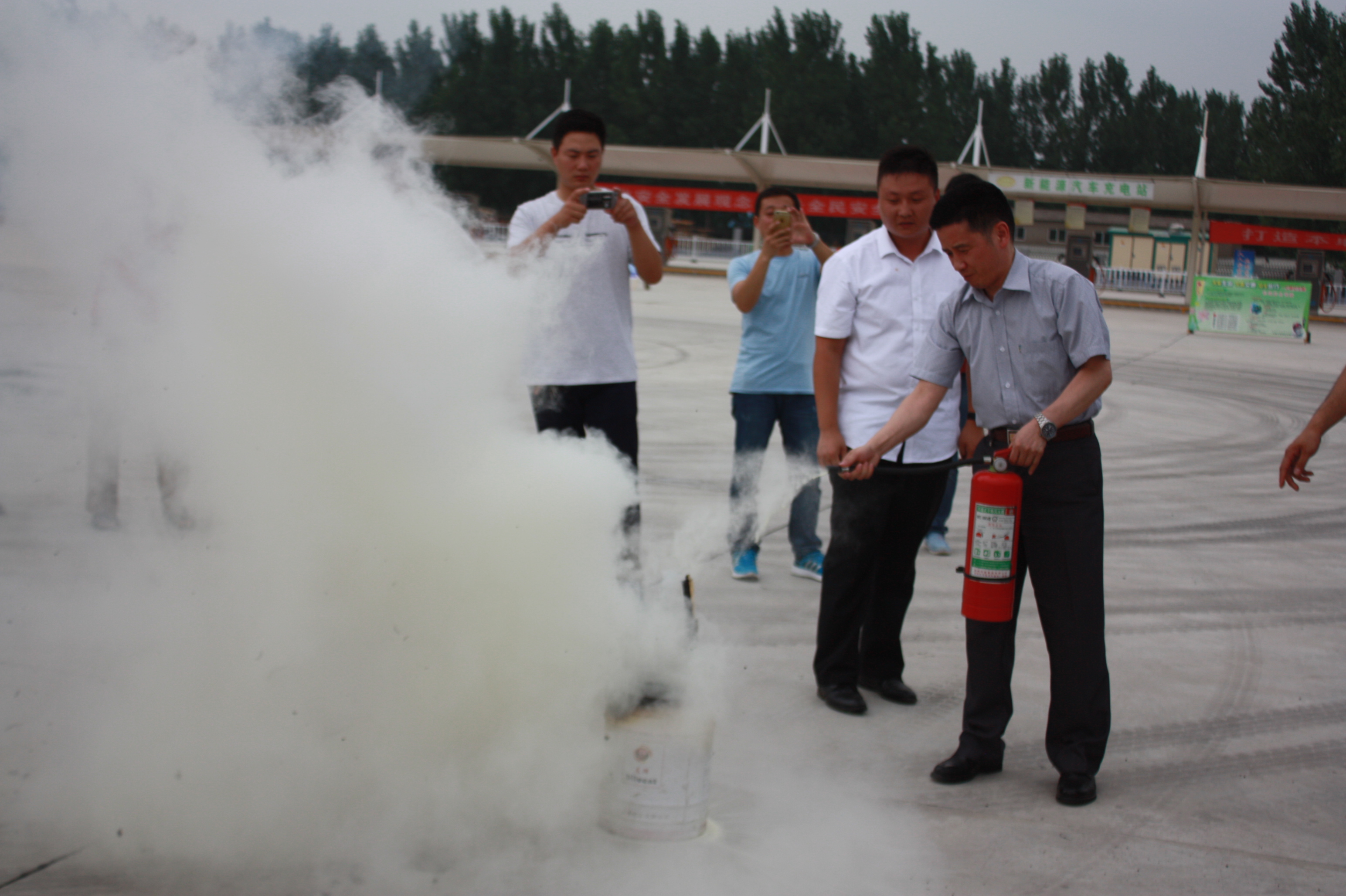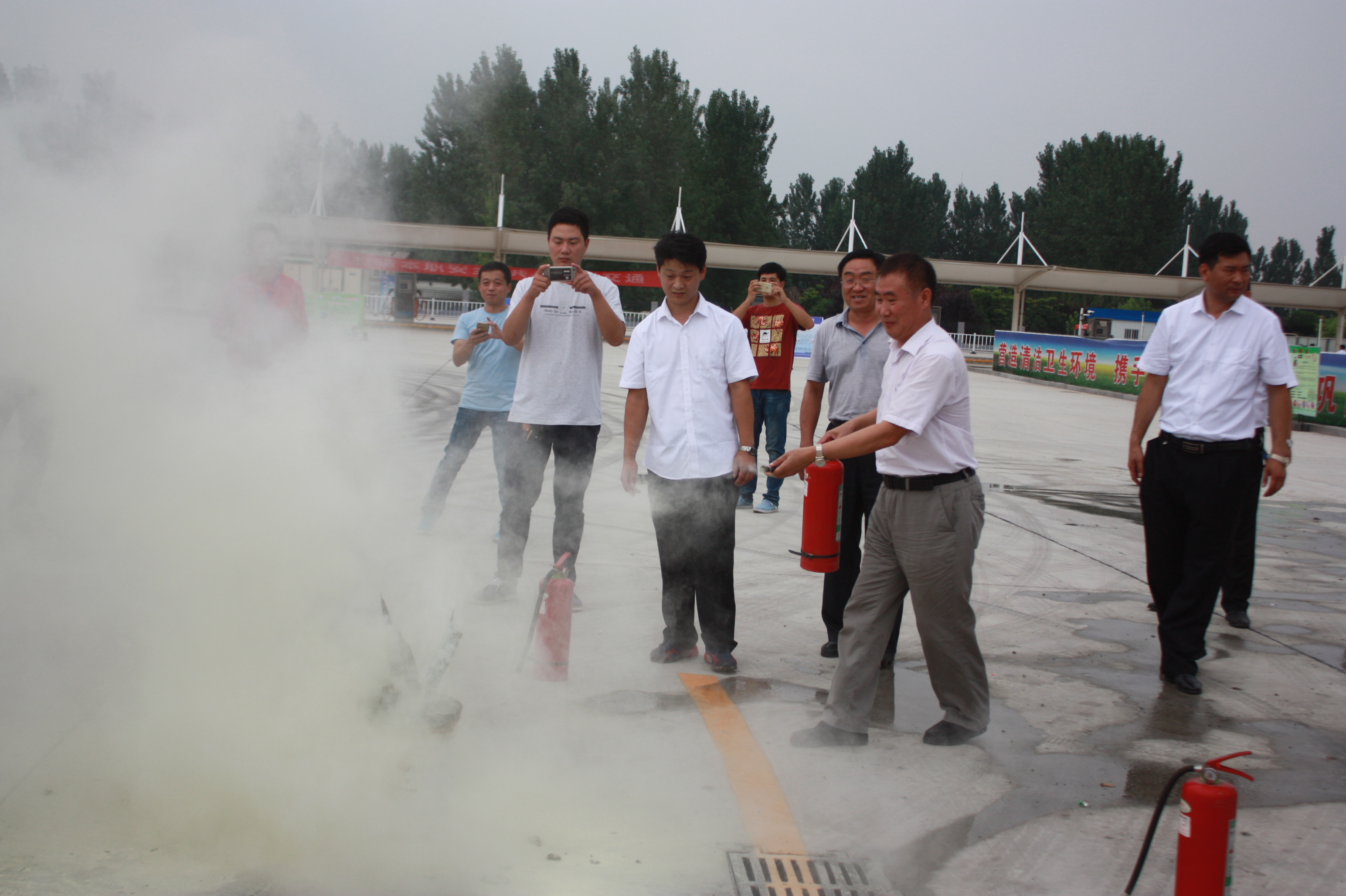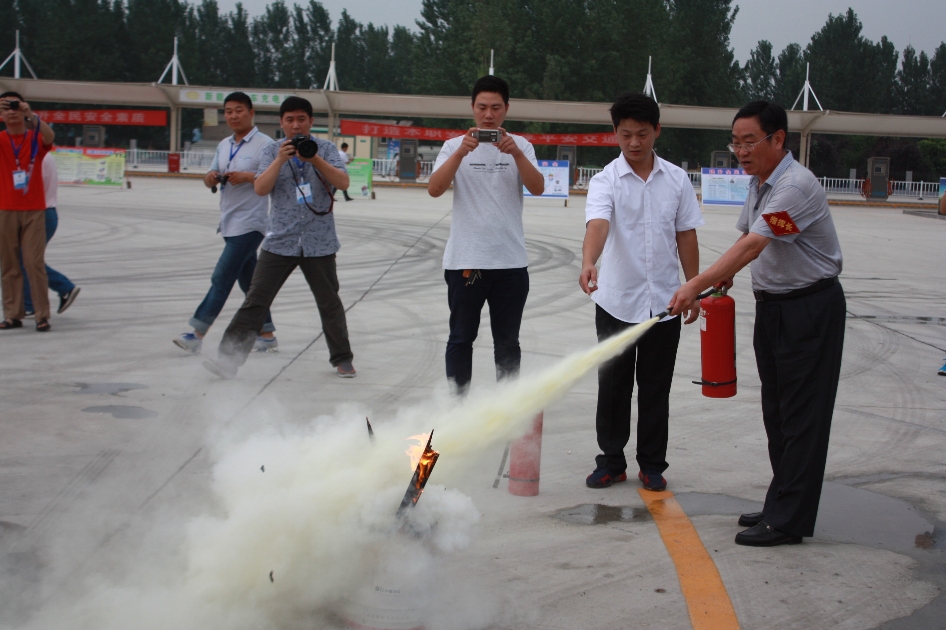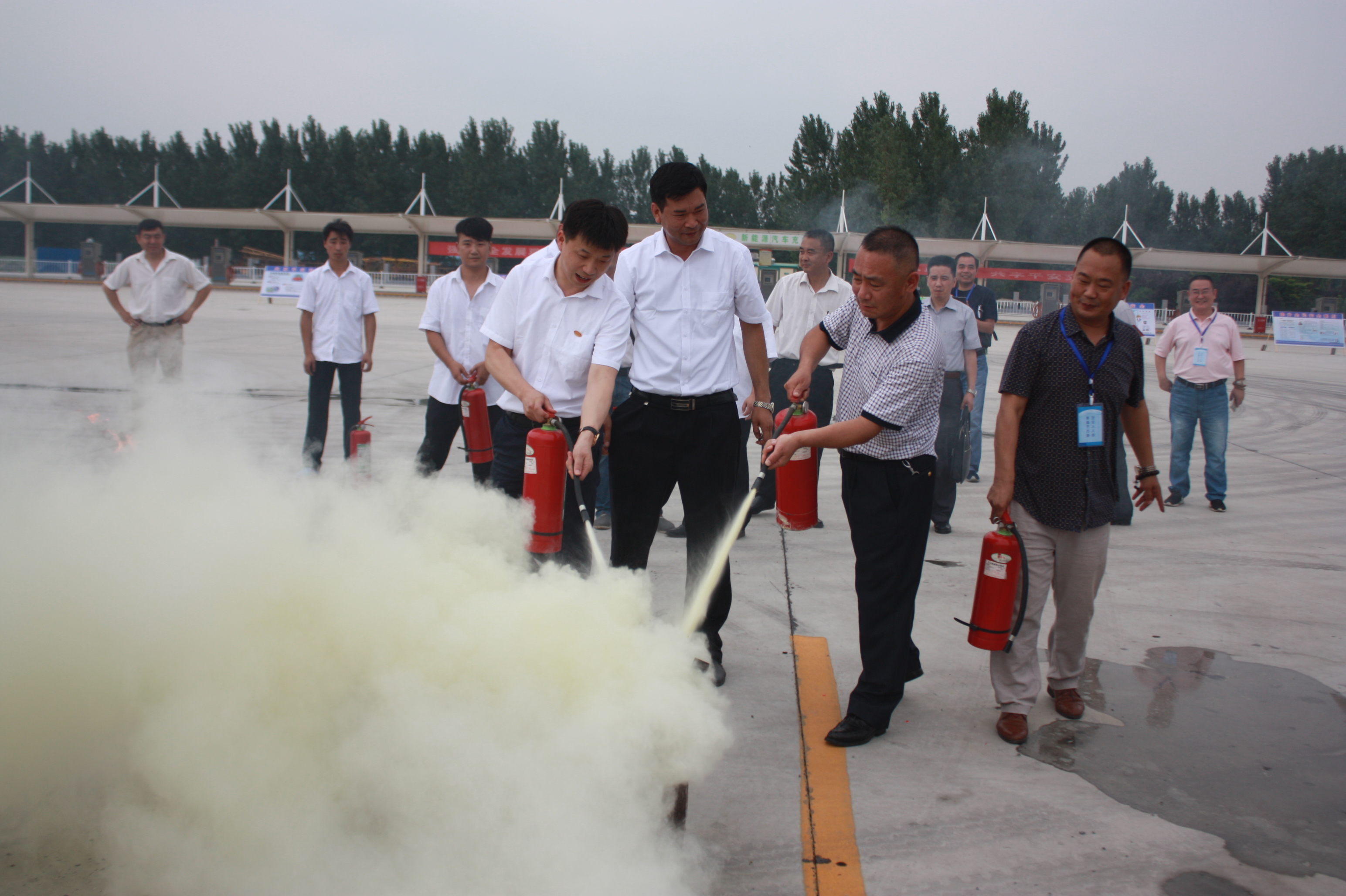 活动最后,工作人员向参会人员讲解灭火器使用常识,与会领导现场进行了实际灭火操作。通过对灭火器的实际操作演练,大家不仅掌握了灭火器的使用方法,同时也增强了消防意识,整个演练营造了一种“人人学消防、人人参与消防”的良好氛围。