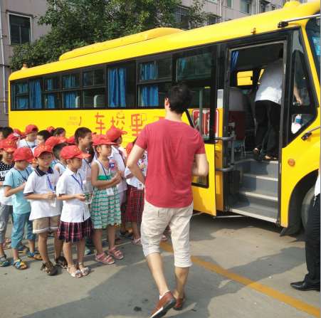 8月19日许昌小记者报社和万里校车公司联手举办“关爱学生出行”为主题的了解校车、乘坐校车体验活动。