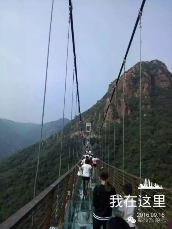 我们先去了凤凰天桥。凤凰天桥是中原地区首座玻璃悬空桥,坐落于伏羲山三泉湖景区,连接着玫瑰岭和凤凰大峡谷,因此取名“凤凰天桥”。吊桥的总长度有210米,其中玻璃部分有180米,落差超过100米,采用的是特殊玻璃,这类玻璃比传统玻璃材料要坚固25倍,让大家亲身体验了惊险与刺激!