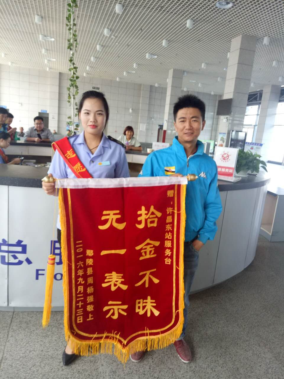 像这样旅客丢失物品的事情时有发生,汽车客运站的员工总能做到拾金不昧,他们想旅客之想,急旅客之急。想方设法找到失主,用真诚让旅客满意。得到旅客的认可,就是对他们工作最好的回报。我们要以他们为学习榜样,共建文明许昌汽车客运站!