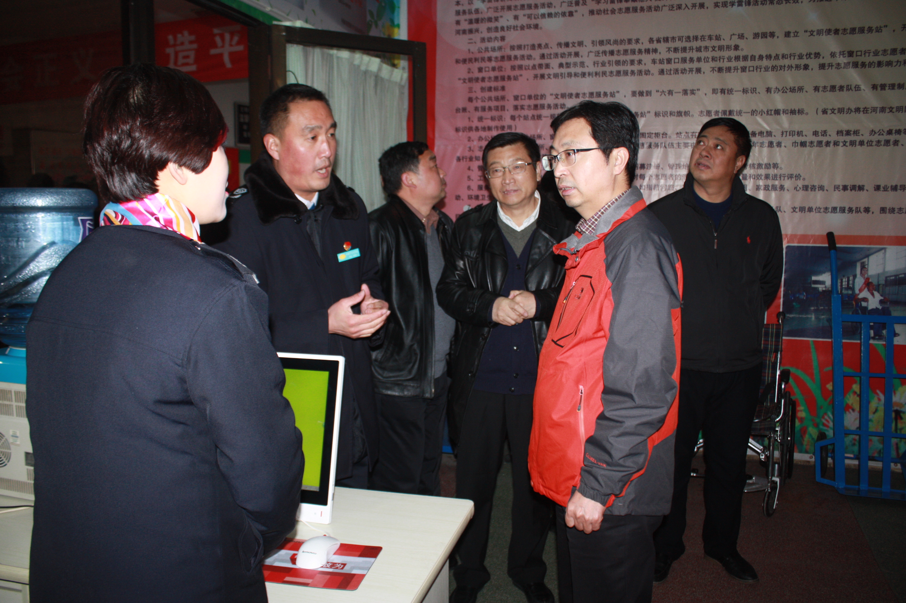 中心站站长陈鹏波引领交通部领导到“文明使者志愿服务站”查看了为旅客免费提供服务的“母婴哺乳室、行李车、晴雨伞、打气筒、晕车药、创可贴、开水、便签纸、工具箱、图书,仔细观看“志愿者信息发布”,查看了志愿服务资料,查看了在《许昌日报》发表的志愿服务事迹。尤其是看了“特困旅客救助资金”账本、单据、申请救助书等,部领导给予肯定。2017年中心站获得省级“文明使者志愿服务站”,为许昌市争了光,为万里集团增光添彩,为创建2017年的“诚信春运”奠定了基石。