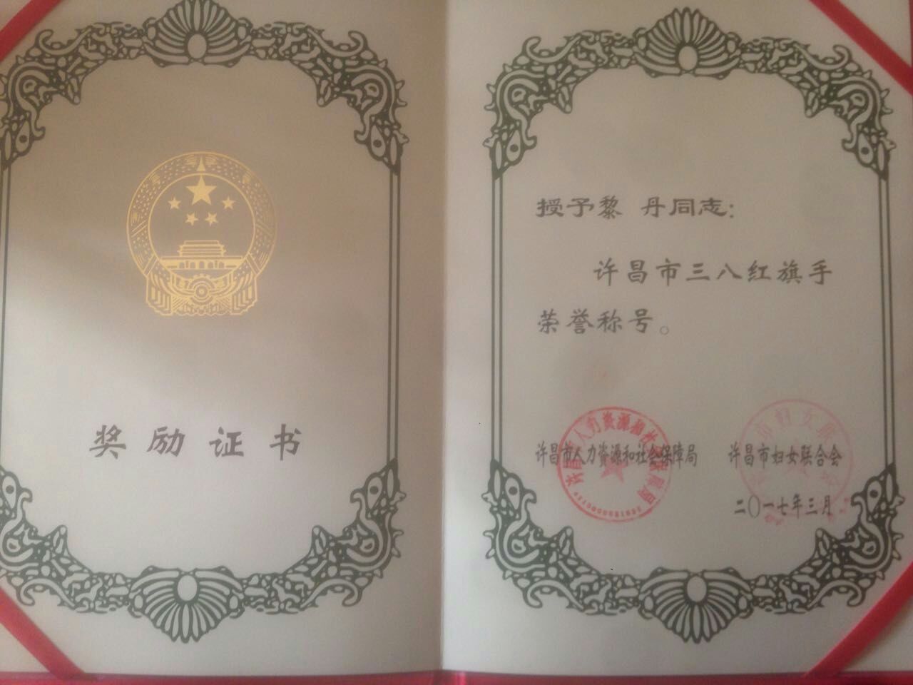 中心汽车站职工黎丹荣获“许昌市三八红旗手”荣誉称号