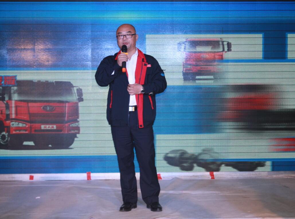 一汽解放河南商代处自卸品系经理杨鹏现场为广大卡友详细讲解了一汽解放全新推出的升级产品——新J6,让大家进一步详细了解了新产品的先进理念和优良品质。