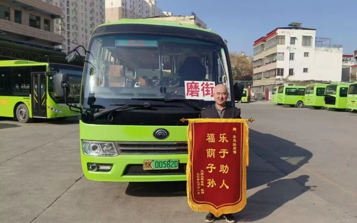 近日,禹州市退休老教师带着一面崭新的锦旗,来到禹州市公共交通有限公司,遇见磨街线路车长贺朋飞 :一定要把这面旗亲手交给李建勋师傅,麻烦你了!”