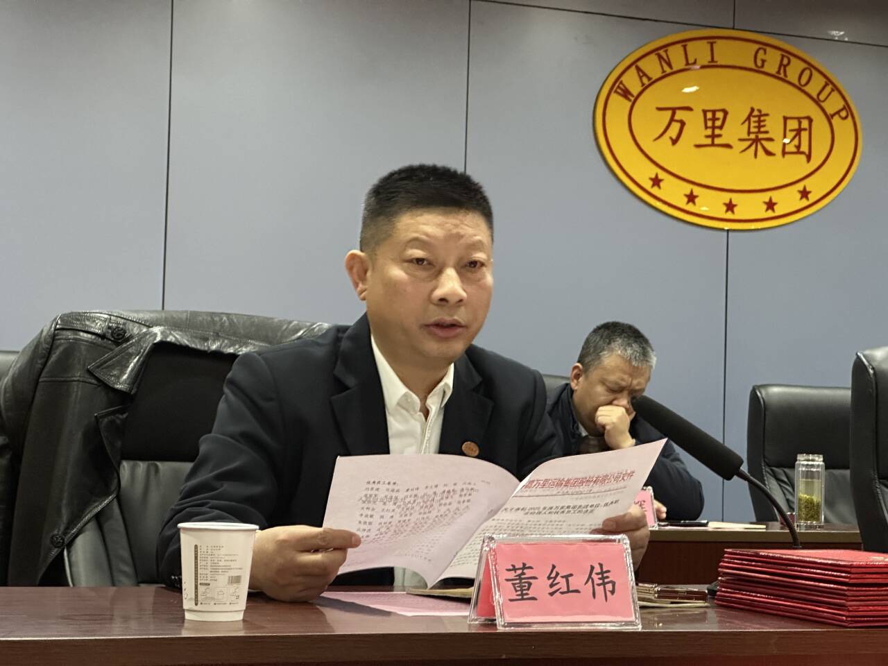 集团党委委员、董事董红伟宣读《关于表彰2025年度万里集团先进单位、优秀职业经理人和优秀员工的决定》。