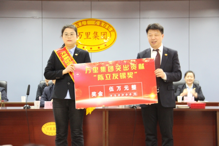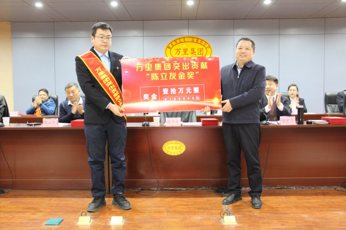 集团党委委员、副董事长王柏强宣读《关于表彰2025年度万里集团突出贡献“陈立友金奖”获得者的决定》。